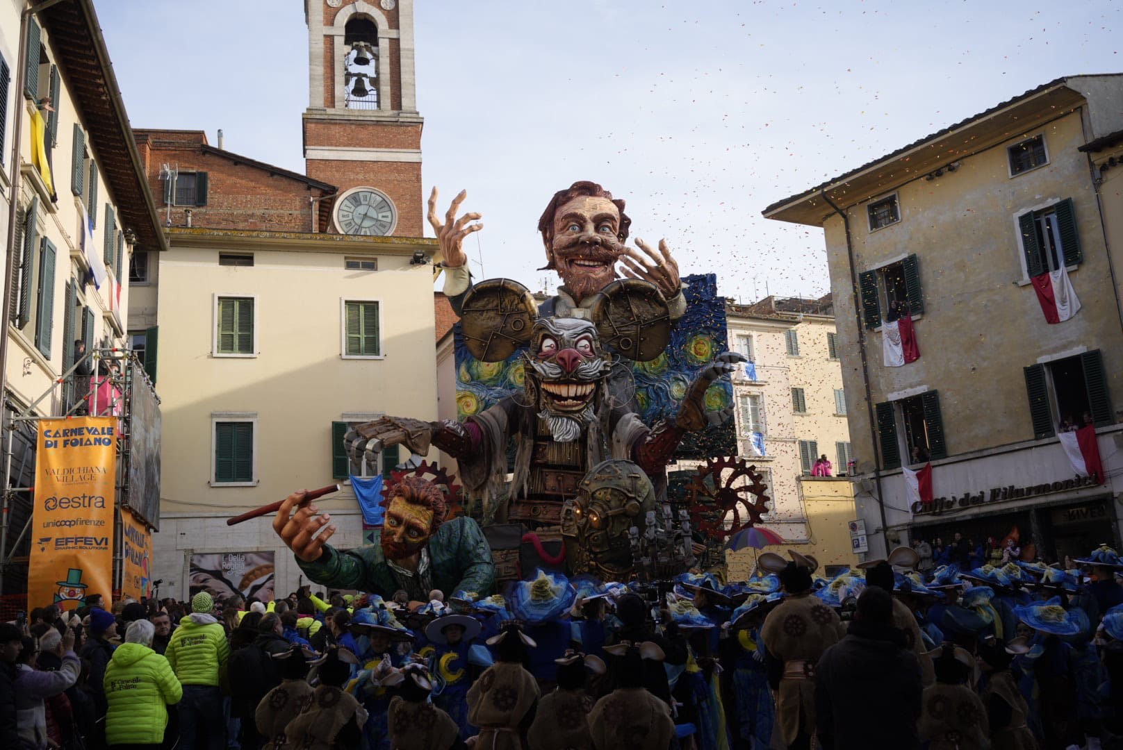 Occhi spalancati sulle meraviglie di cartapesta. La festa è iniziata, la sfida è nel vivo. Taglio del nastro per il Carnevale di Foiano, il più antico d’Italia. Fino al 1° marzo, per cinque domeniche, si articolerà nelle strette vie del centro storico, animate da quattro giganteschi e colorati carri allegorici costruiti da maestri cartapestai. La 487ª edizione è stata inaugurata dal sindaco Jacopo Franci alla presenza del presidente della Regione Toscana, Eugenio Giani, e del presidente della Provincia di Arezzo, Alessandro Polcri. "Il Carnevale di Foiano è sempre più bello e ben organizzato, fa parte della storicità della nostra Toscana", ha sottolineato Giani. Madrina 2026 l’attrice Enrica Guidi, presente il 29 gennaio per l’estrazione dell’ordine dei carri. C’era molta attesa per l’uscita dei carri dei Cantieri, portati nel centro del paese dove si sono esibiti davanti alla giuria, secondo l’ordine estratto: Azzurri, Rustici, Nottambuli e Bombolo.