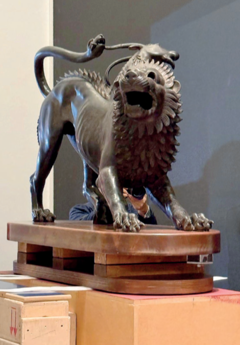 Ad Arezzo ritorna la Chimera simbolo della città e il primo ad accoglierla è stato il sindaco, Alessandro Ghinelli, dopo essersi adoperato per esporla nella grande mostra internazionale “Vasari, il Teatro delle Virtù”, dedicata a Giorgio Vasari - che dal 30 ottobre al 2 febbraio 2025, vedrà arrivare, o tornare, oltre 100 opere dalle più note istituzioni italiane ed estere. Ghinelli ha dato il benvenuto alla Chimera anche in un post sul suo profilo social. “L’opera – spiega il direttore della Fondazione Guido d’Arezzo, Lorenzo Cinatti – è arrivata nella mattina di martedì e, accompagnata dal curatore del Museo Archeologico di Firenze, è stata sballata dalle casse per perfezionarne l’allestimento in mostra al primo piano della Galleria comunale come previsto, ci sarà anche un supporto multimediale”.