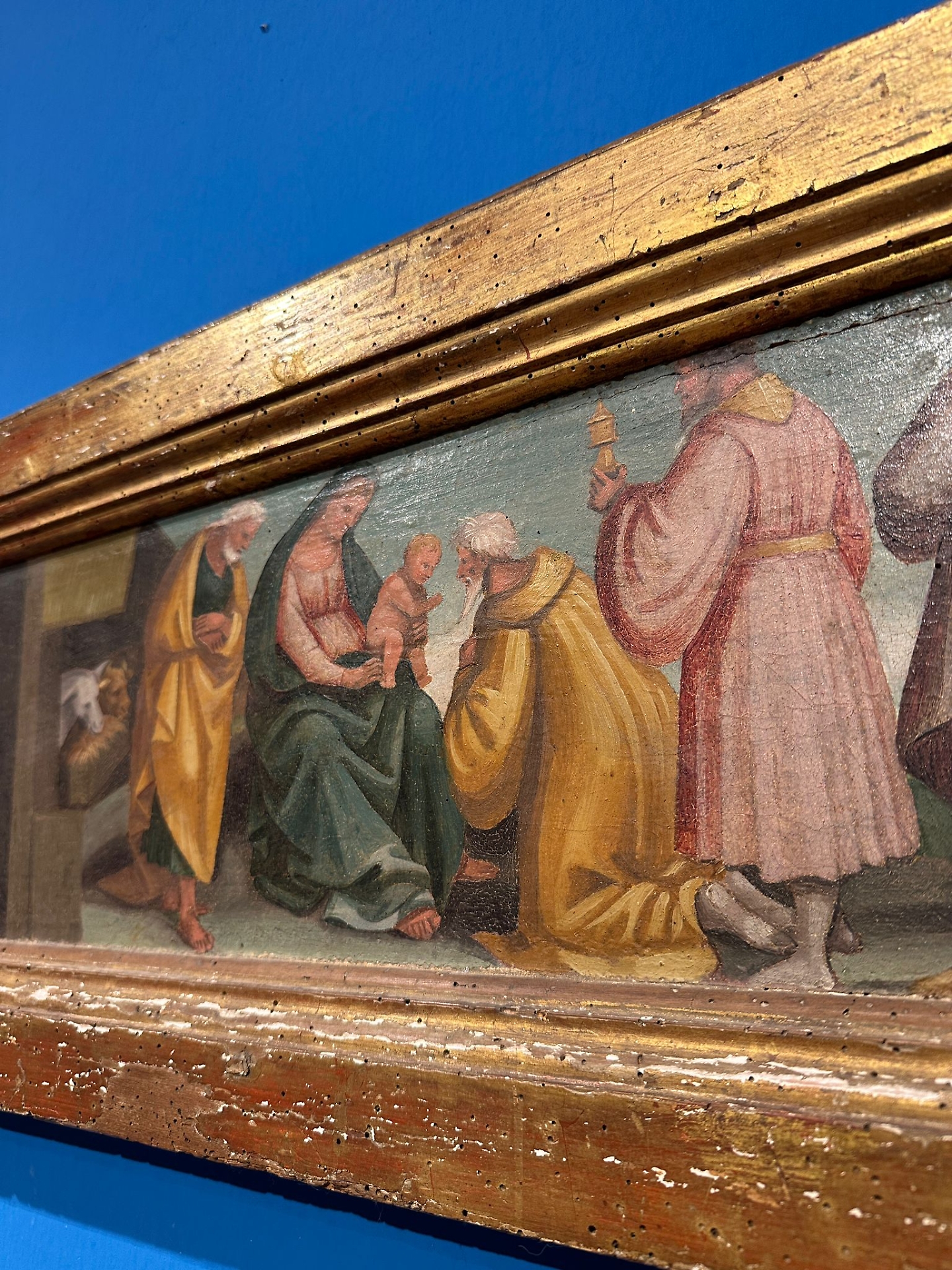 Realizzata per completare la pala collocata nella cappella della Chiesa di Santa Maria delle Grazie al Calcinaio - che campeggia sul primo altare a destra - l’opera torna in città dopo oltre 150 anni, offrendo al pubblico un’occasione irripetibile per ammirarla. L’opera illuminerà così la mostra dell’antiquariato che è la più antica Mostra Mercato Nazionale d’Antiquariato d’Italia, aperta al pubblico da oggi.