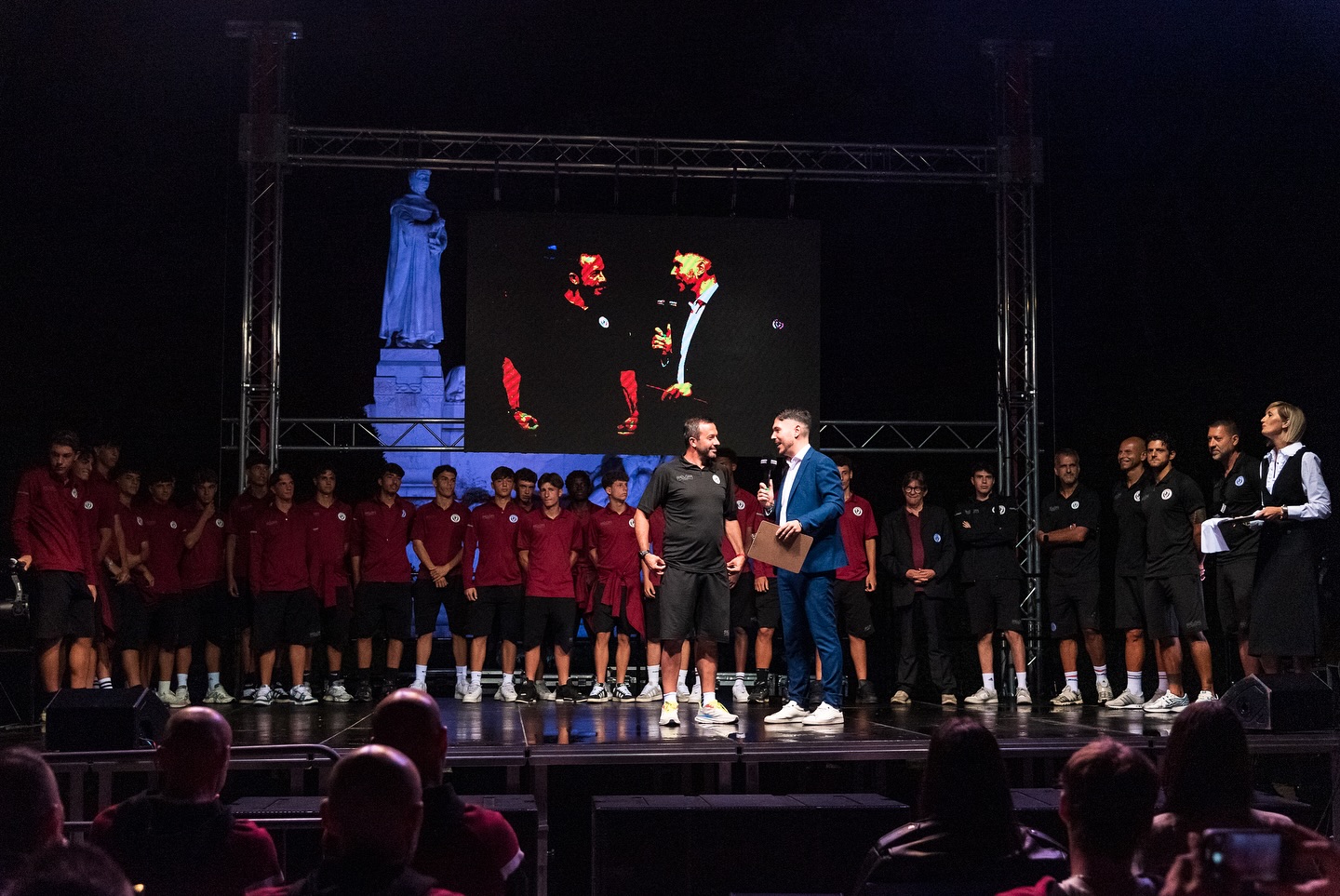 È stata una serata suggestiva e all’insegna dei colori amaranto quella andata in scena domenica sera al Prato per la presentazione ufficiale del club amaranto. Il presidente Guglielmo Manzo ha lanciato messaggi importanti alla piazza, parlando del nuovo stadio, ma anche tirando le somme dei suoi anni di gestione: “Cinque anni fa eravamo davvero in pochi. Era appena iniziata la nostra avventura, con tante speranze e con un visionario che diceva: ‘Tranquilli, lotteremo per salire’. I primi due anni non sono stati facili, ma poi ci abbiamo messo volontà, lavoro e soprattutto abbiamo scelto le persone giuste. Oggi essere qui è bellissimo. La curva, che c’è sempre, in qualunque momento, è qualcosa di fantastico. Vi ringrazierò sempre: siete stati con noi anche nelle trasferte più lontane e difficili. Davvero, grazie di cuore per esserci sempre”.