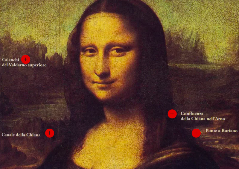 La Gioconda e lo studio di Carlo Starnazzi sul ponte ritratto alle spalle, Ponte Buriano