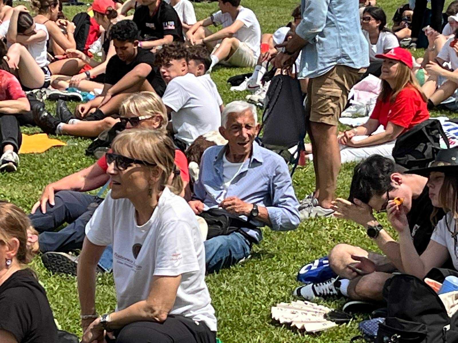 Sul prato di Rondine Cittadella della Pace, dopo la marcia di giugno 2025, nel giorno del presidente Mattarella