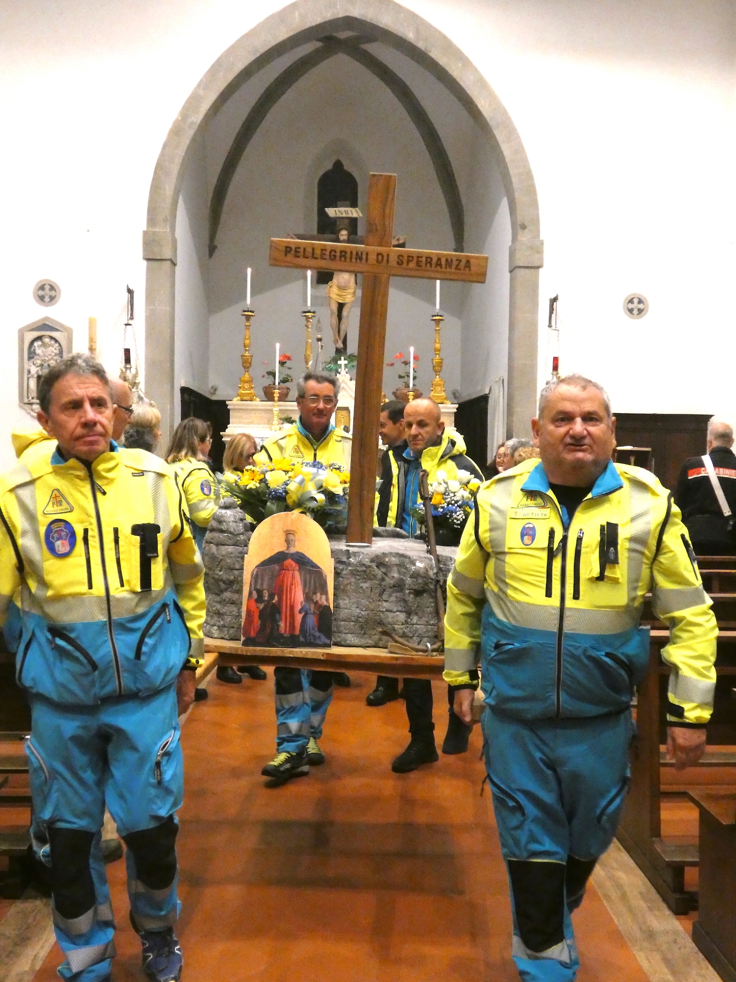 La Croce del Giubileo ad Arezzo. Questa è la settimana in cui l’Icona Giubilare delle Misericordie visita la Provincia di Arezzo. Presa in consegna domenica 16 novembre dalle mani della Misericordia di Santa Fiora, sull’Amiata, e da quelle del coordinamento delle Misericordie della provincia di Grosseto, lunedì 17 novembre di buon’ora è stata esposta ad Arezzo nella chiesa della SS Trinità della Misericordia, con la S. Messa officiata dal Correttore spirituale della Misericordia di Arezzo padre Francesco Bartolucci.