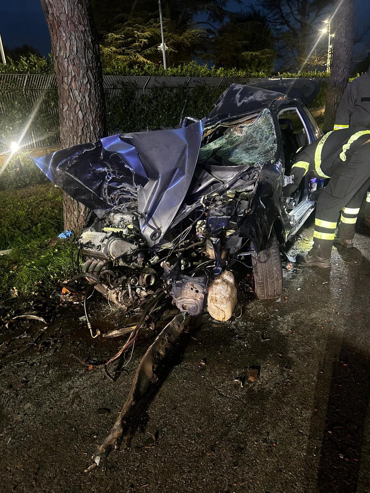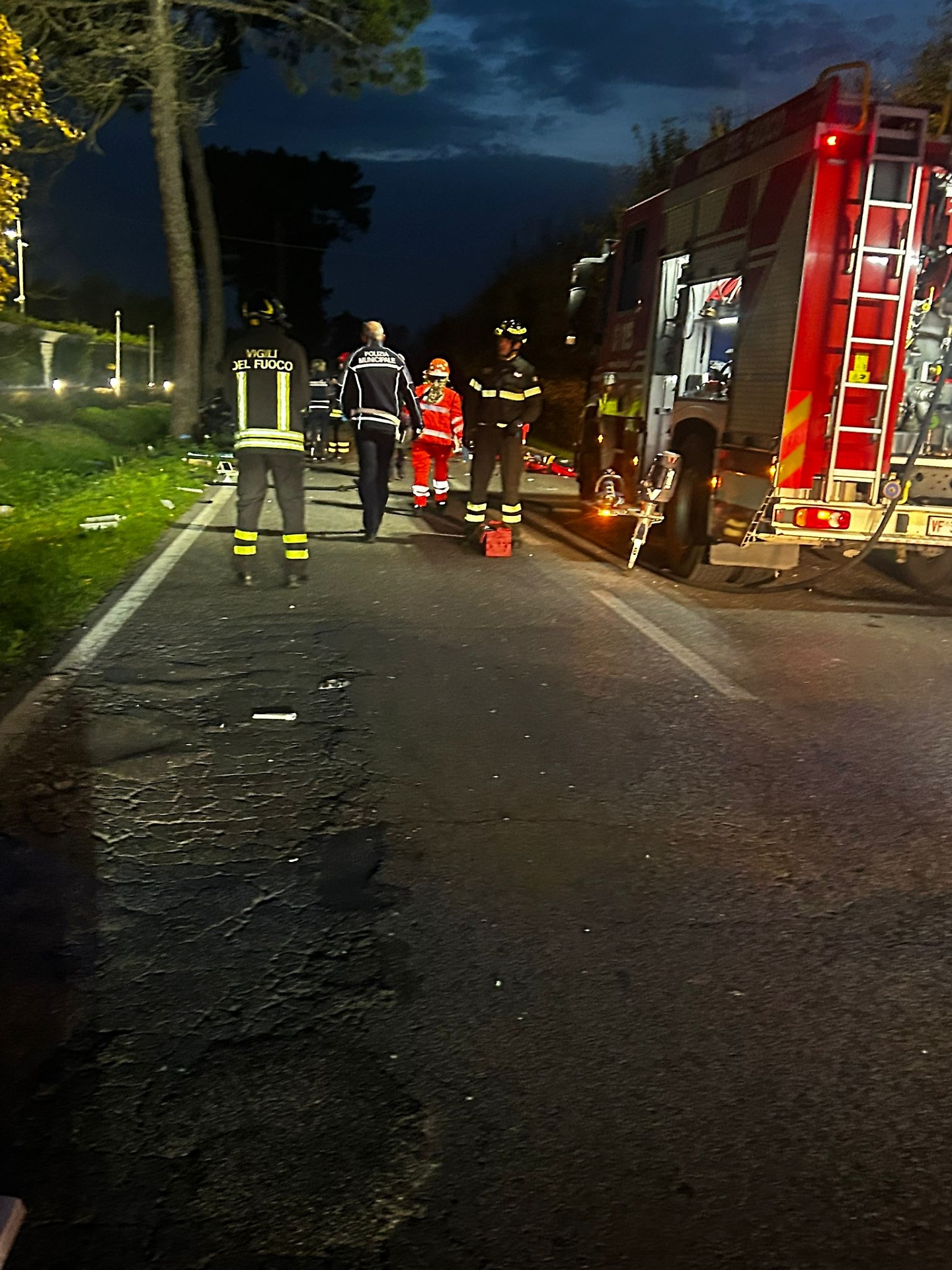 Impatto fatale sui pini lungo la Ss73 a San Zeno