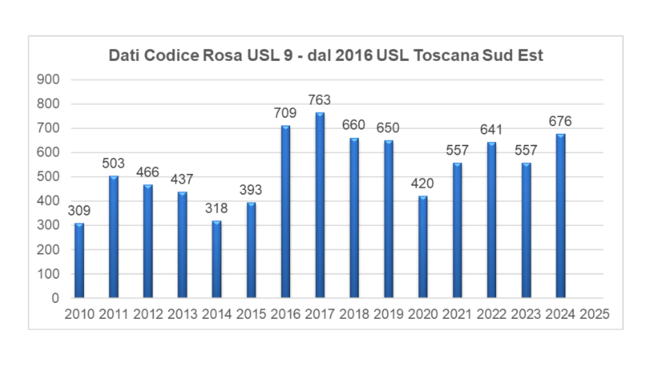 Dietro a un livido, ad un graffio, a una frattura, può aprirsi un mondo doloroso da indagare. Si chiama codice rosa ed è l'emergenza che scatta troppo spesso negli ambienti sanitari delle province di Arezzo, Siena e Grosseto che compongono l'area vasta. Casi di violenza di genere e crimini d'odio: di questo si tratta. Tante donne aggredite o abusate, ma non solo: le vittime sono anche bambini e anziani.