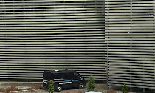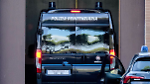 Il mezzo della polizia penitenziaria che ha portato in aula dal carcere l'imputato