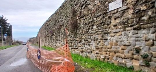 Puntuale da parte dell’amministrazione comunale l’intervento per limitare il traffico nella parte che costeggia il muro dove è stata stesa la rete color arancio- Un transennamento mirato a evitare il passeggio anche dei pedoni in un’area potenzialmente a rischio di distacchi di pietra e crolli. Al fine di prevenire evoluzioni negative della situazione di criticità strutturale in essere, il Comune di Arezzo ha quindi limitato il traffico veicolare, interdetto il parcheggio agli autoveicoli, e l'accesso ai passanti con apposita transennatura e iniziando accurate verifiche con tecnici qualificati tecnico qualificato per poi avviare l’iter per dare una risposta definitiva per un consolidamento utile a realizzare un progetto che prevede in sintesi la realizzazione di un nuovo sistema strutturale capace di sostenere la spinta del terreno a tergo delle mura e di un sistema di tiranti capaci di sostenere le mura. In particolare i lavori di consolidamento permetteranno di realizzare una paratia di micropali e tiranti che ancoreranno le mura alla paratia.