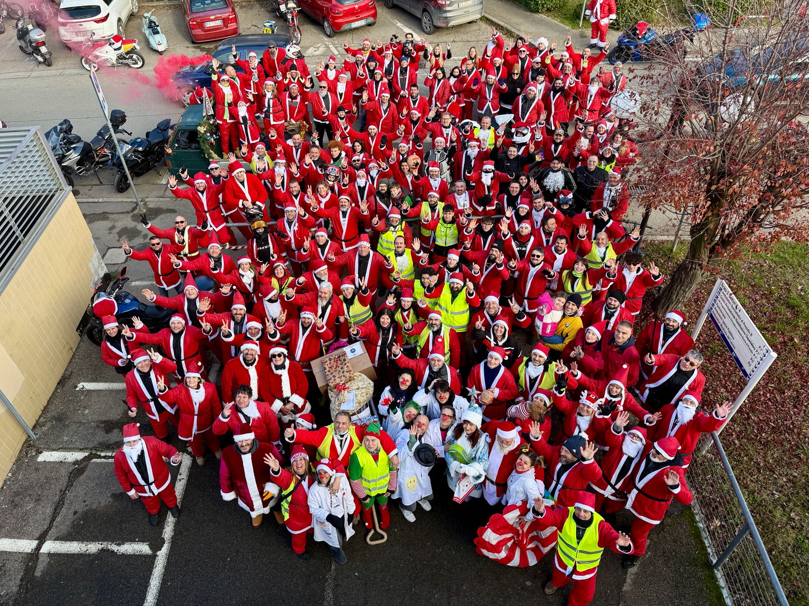 Il rombo festoso di oltre centocinquanta motociclette, tutte vestite di rosso, ha annunciato ai bambini della Pediatria del San Donato di Arezzo che il Natale, ancora una volta, ha deciso di arrivare prima. E di farlo nel modo più rumoroso, allegro e inaspettato possibile. Anche quest’anno l’ospedale si è trasformato in un luogo di festa grazie alla parata dei motociclisti travestiti da Babbo Natale, che dopo il giro in città, hanno fatto il loro ingresso percorrendo l’anello interno della struttura, salutati dagli sguardi curiosi dei piccoli pazienti, dall’emozione dei familiari e dai sorrisi del personale sanitario. Un’invasione gentile e colorata, capace di rompere per qualche ora la routine del ricovero e di portare leggerezza dove spesso pesano attese e preoccupazioni.