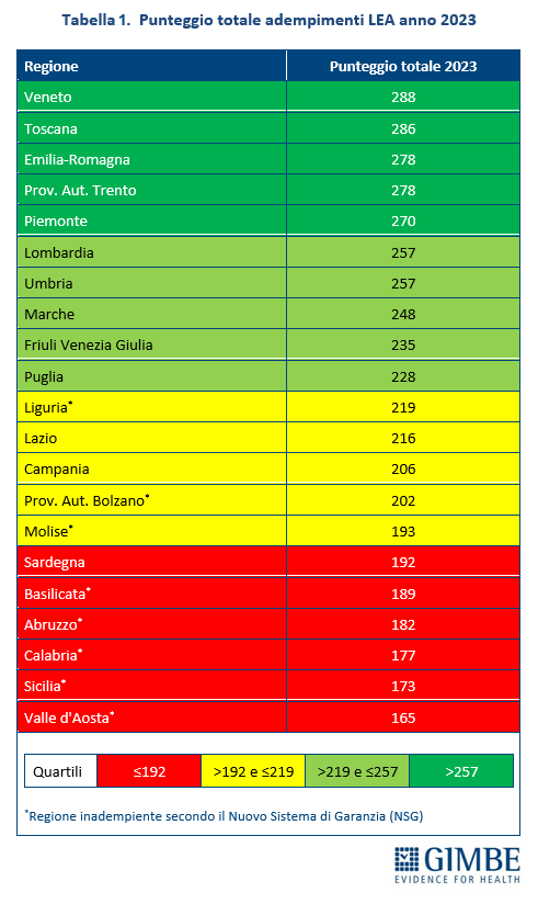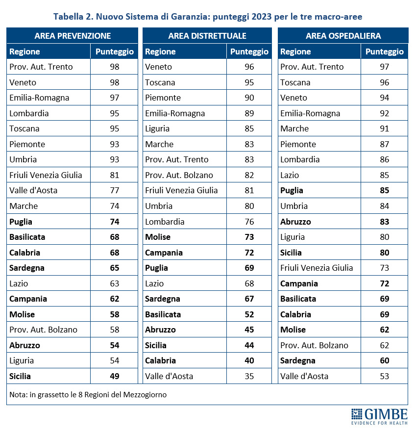 Le tre graduatorie relative allo stato di salute della sanità italiana