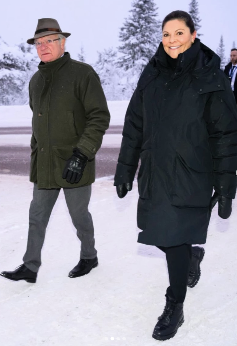 Accanto a lei, Re Carlo procede sullo stesso bianco con un’idea opposta di passo: loden corto, scarpe eleganti, un’eleganza più formale, quasi cerimoniale. Vittoria, invece, sceglie la via concreta. Camminare comoda. Camminare a lungo. E in quella scelta, gli stivaletti Prada diventano la firma inattesa che rompe l’omogeneità “Made in Sweden” senza stonare mai. Se l’ispirazione vi ha già colpite, la lezione è semplice: copiate la logica, non il gelo. Piumino maxi, pantalone tecnico (anche cargo), stivaletti da neve stringati con interno caldo, e un accessorio scuro che richiami la pelle. È una formula che non tradisce quando la temperatura scende sul serio. Morale per le lettrici quando il freddo è reale, non serve complicare. Serve scegliere bene. E se la Svezia firma il corpo del look, l’Italia con Prada firma l’ultima parola. Quella che lascia l’impronta di stile sulla neve.