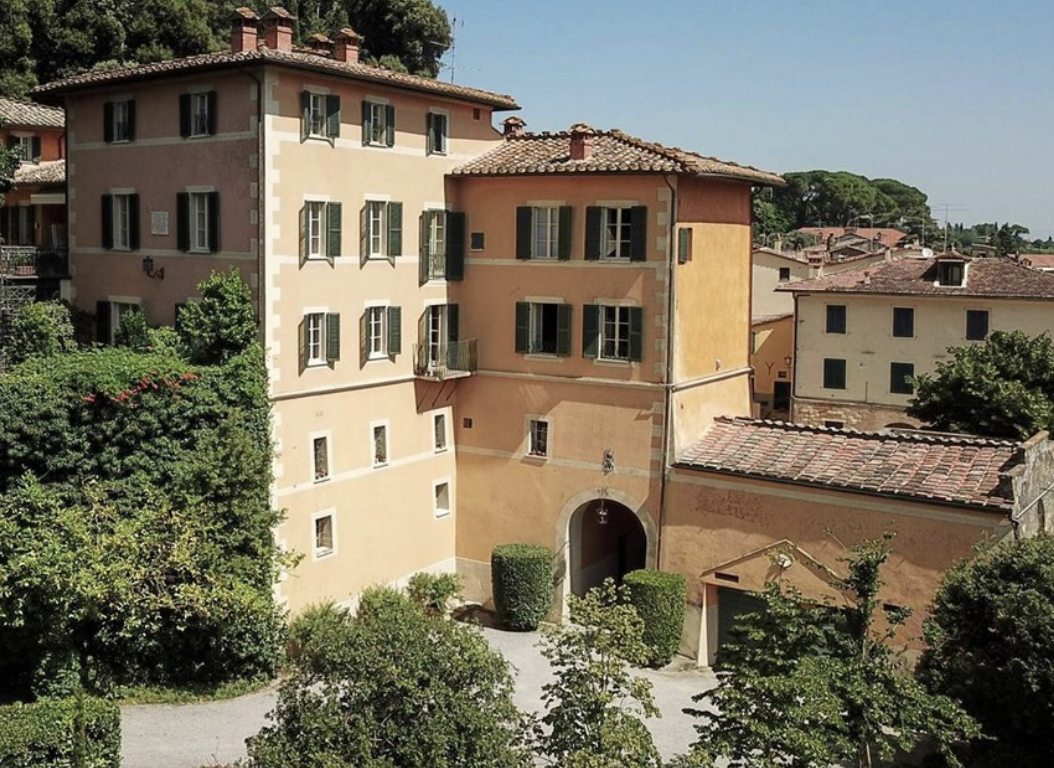 Ed è proprio nel cuore del paese, con un ingresso affacciato direttamente sulla piazza principale, che si trova Villa La Vagnola, la dimora che Valentino ha trasformato in un’estensione intima del suo universo creativo. Un paradosso affascinante: centralissima e al tempo stesso nascosta, immersa in 27 ettari di campagna toscana completamente recintata, capace di offrire una riservatezza assoluta pur restando connessa alla vita del borgo. La villa risale alla metà del Settecento, intorno al 1750, ed è stata acquistata da Giancarlo Giammetti verso la metà degli anni Ottanta da una coppia di inglesi, per una cifra poco inferiore al miliardo di lire. Con i suoi circa 1.600 metri quadrati e 15 stanze tra camere da letto, sale di rappresentanza, cucine e alloggi per il personale, La Vagnola era già una residenza imponente. Ma è con l’intervento di Renzo Mongiardino che ha assunto quell’aura teatrale e iperdecorativa che l’ha resa leggendaria. Mongiardino, architetto e scenografo genovese, portava con sé l’esperienza maturata accanto a registi come Franco Zeffirelli e Gian Carlo Menotti. Alla Vagnola mise in scena uno dei suoi capolavori assoluti, lavorando su finte pareti, proporzioni manipolate, illusioni ottiche e stratificazioni decorative che trasformavano ogni stanza in un set. La sala da biliardo, sovrastata da un soffitto affrescato di straordinaria imponenza, è forse l’emblema di questa visione. Ma non meno suggestiva è la hall d’ingresso, dipinta in un profondo color indaco che esalta gli affreschi del soffitto e dialoga con il pavimento in piastrelle neutre di marmo e terracotta, in un equilibrio cromatico di rara eleganza.