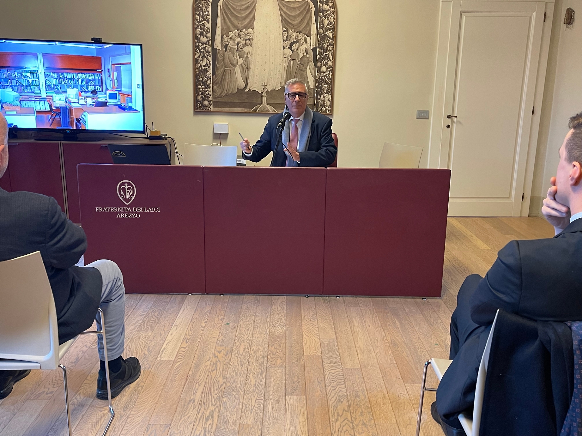 Un momento dell'incontro al Palazzo della Fraternita dei Laici in Piazza Grande