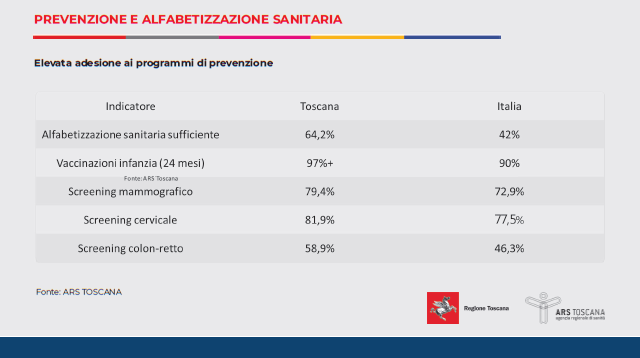 "La Toscana – sottolinea Giani – è una delle sole 4 regioni in fascia verde per tutti gli indicatori di equilibrio economico-finanziario: margine operativo, gestione del debito e tempi di pagamento. Una condizione che ci consente di investire in modo strutturale sulla prevenzione". Un equilibrio non scontato, in una fase storica segnata dall’invecchiamento e dall’aumento della domanda di servizi. "Insomma – conclude il presidente – i dati confermano che la Toscana è una regione di riferimento a livello nazionale". Una fotografia che nel complesso racconta una sanità che sembra capace di trasformare organizzazione, prevenzione e investimenti in un risultato concreto: anni di vita guadagnati, meno grandi malattie, una qualità dell’assistenza che continua a rappresentare uno dei patrimoni più solidi del territorio.