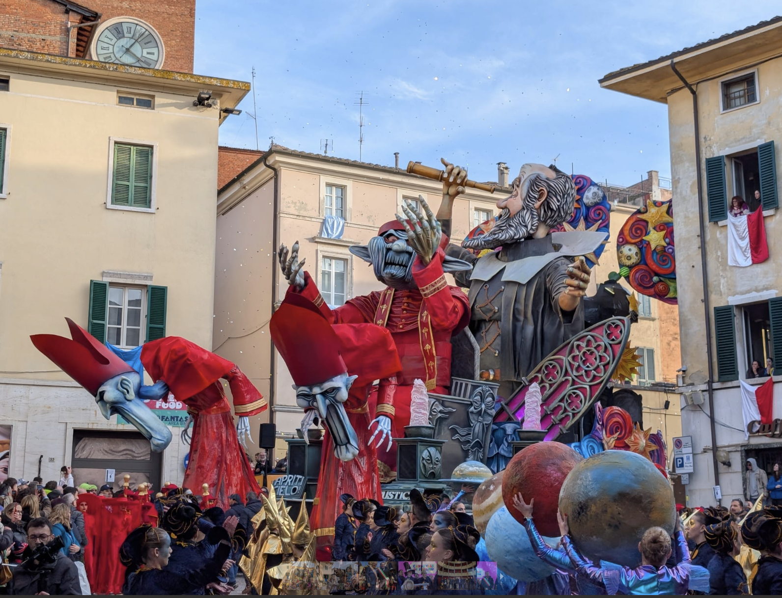 Sempre in tarda mattinata, la Parata Strampalata, accompagnata dalla Masquerada street band, attraversa le vie del centro, affiancata dalle performance di Sem Fuego tra giocoleria e spettacolo di strada. In Piazza Mazzini prende forma il Gioco dell’Oca gigante a tema Carnevale, mentre Piazza Matteotti ospita il Barnevale, spazio pensato per i più piccoli. In Piazza Cavour è attiva l’area food, con proposte legate alla tradizione toscana e allo street food internazionale.
