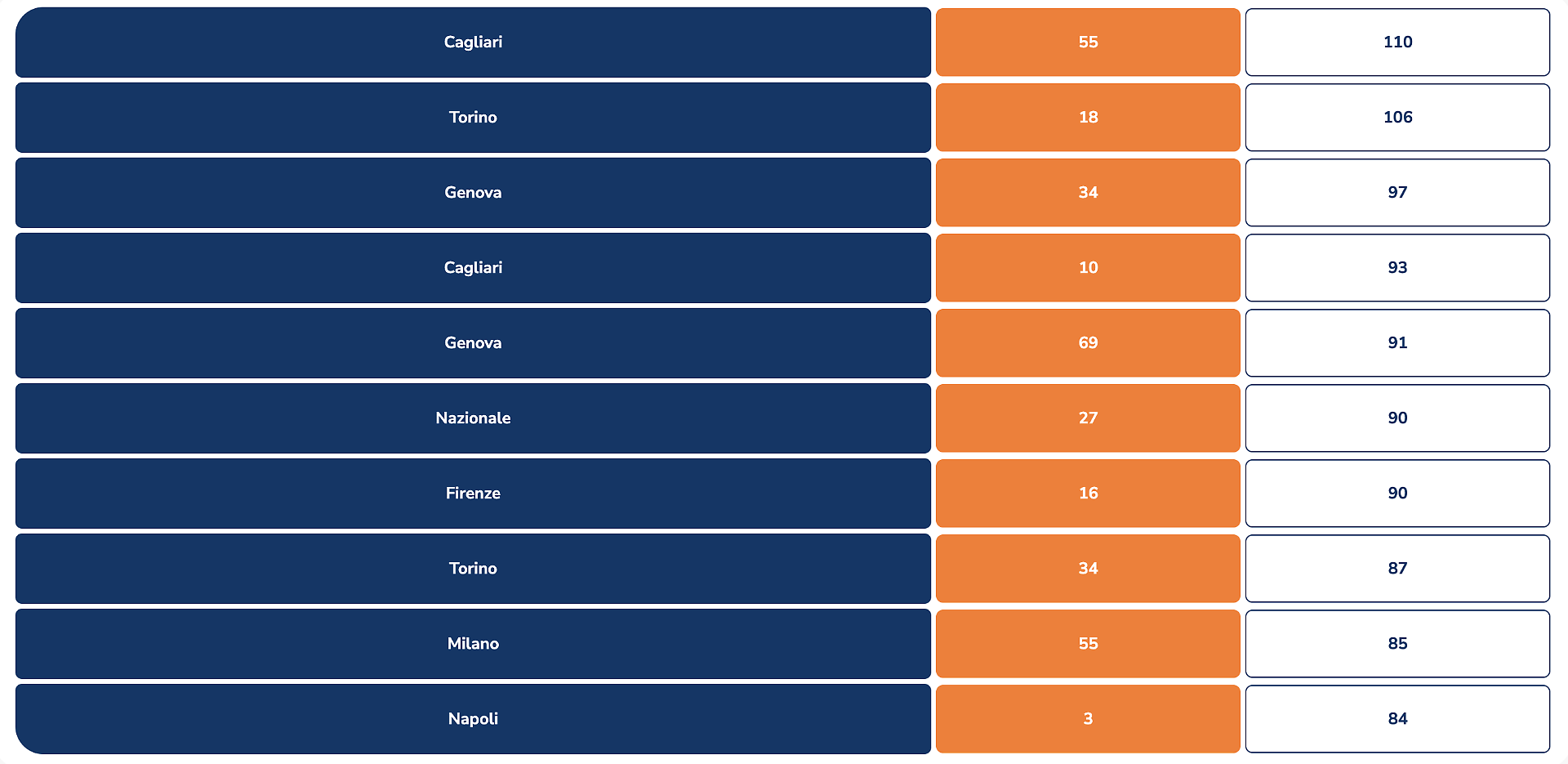 Genova: 87 - 7 - 90 - 32 - 18
