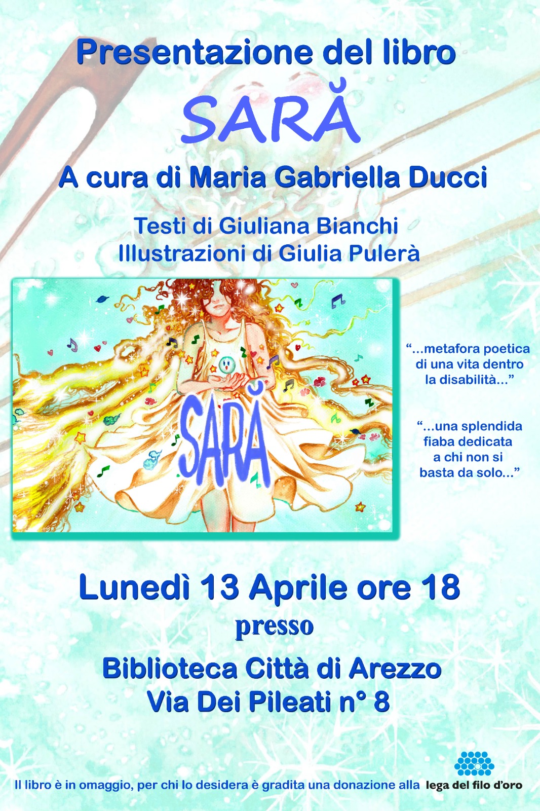 I proventi del libro, tutti ad offerta libera andranno alla Lega del Filo d’oro.