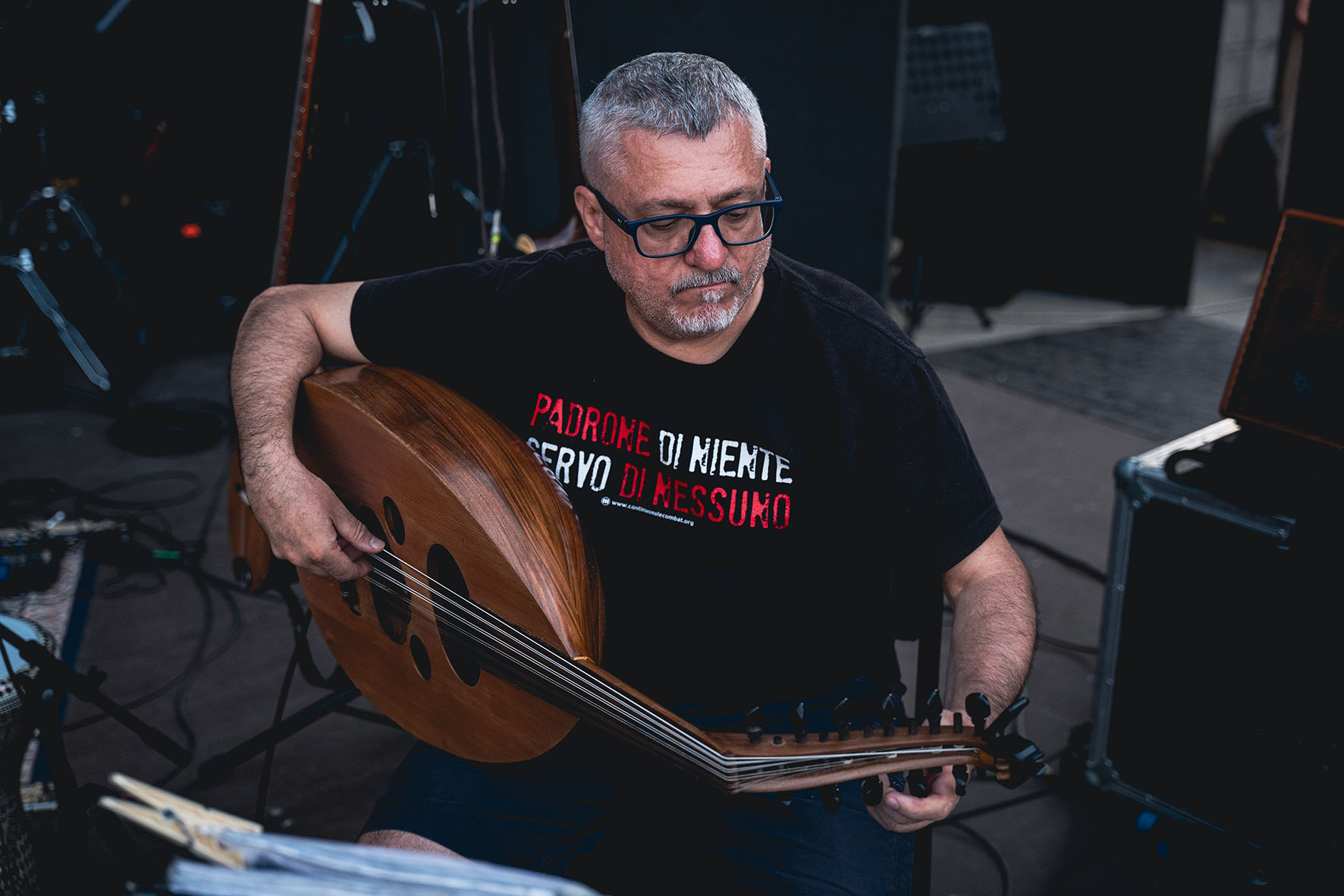 Massimo Ferri, una vita dedicata alla musica, al teatro e all’impegno culturale. Fondatore di Officine della Cultura, come musicista Ferri vanta un passato nella scena rock underground degli anni ’80 come chitarrista e autore del gruppo “combat rock” dei De Corto. Da sempre interessato alle contaminazioni, approda alla world music come autore e chitarrista del gruppo Statale 71 e, successivamente, suonando chitarra e bouzouki con Enrico Fink nella homeless Light Orchestra e in altre formazioni. Nel 2007 è ideatore e fondatore, per Officine della Cultura, del progetto Orchestra Multietnica di Arezzo.