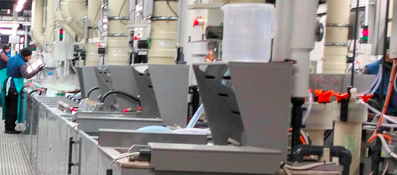 Questo stabilimento, con i suoi 3.000 mq, dei quali soli 2.600 dedicati alla produzione, attualmente ospita 70 persone, attive su quello che è uno dei più grandi impianti di galvanica manuale operanti nel settore moda in Europa