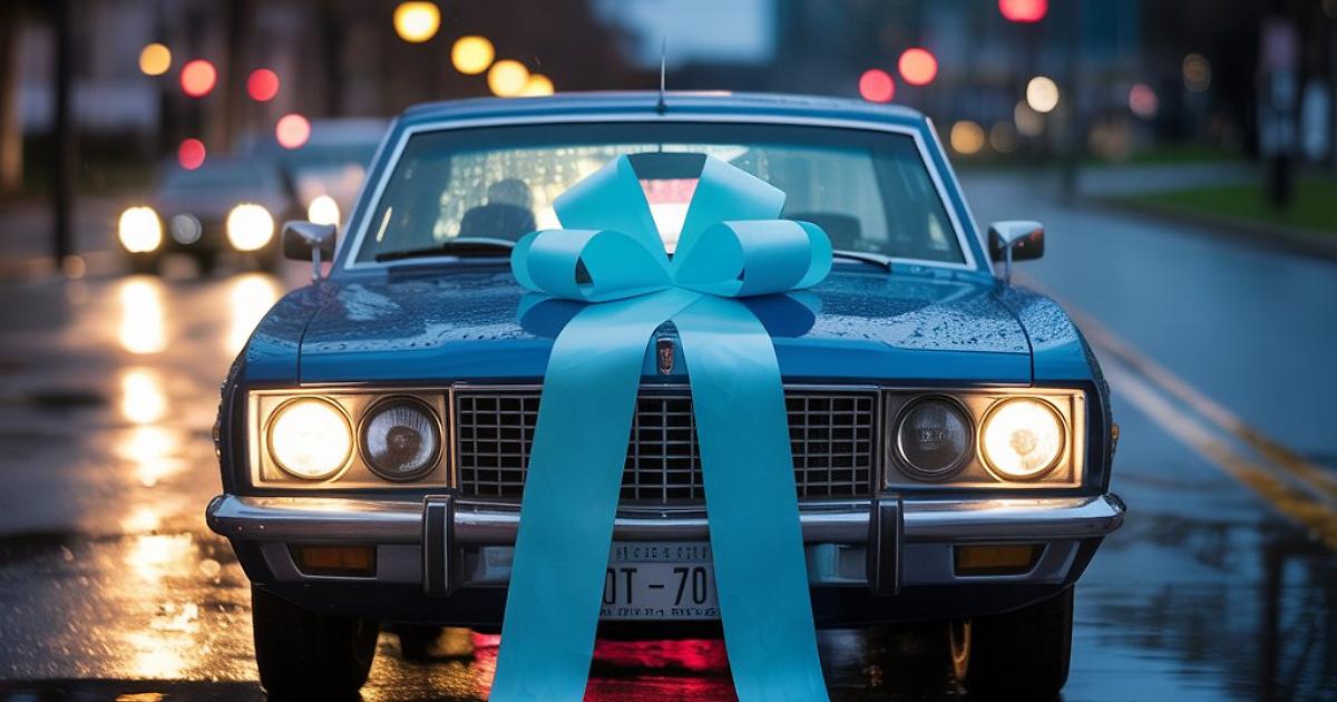 Parto in auto: fiocco azzurro (foto creata con IA)