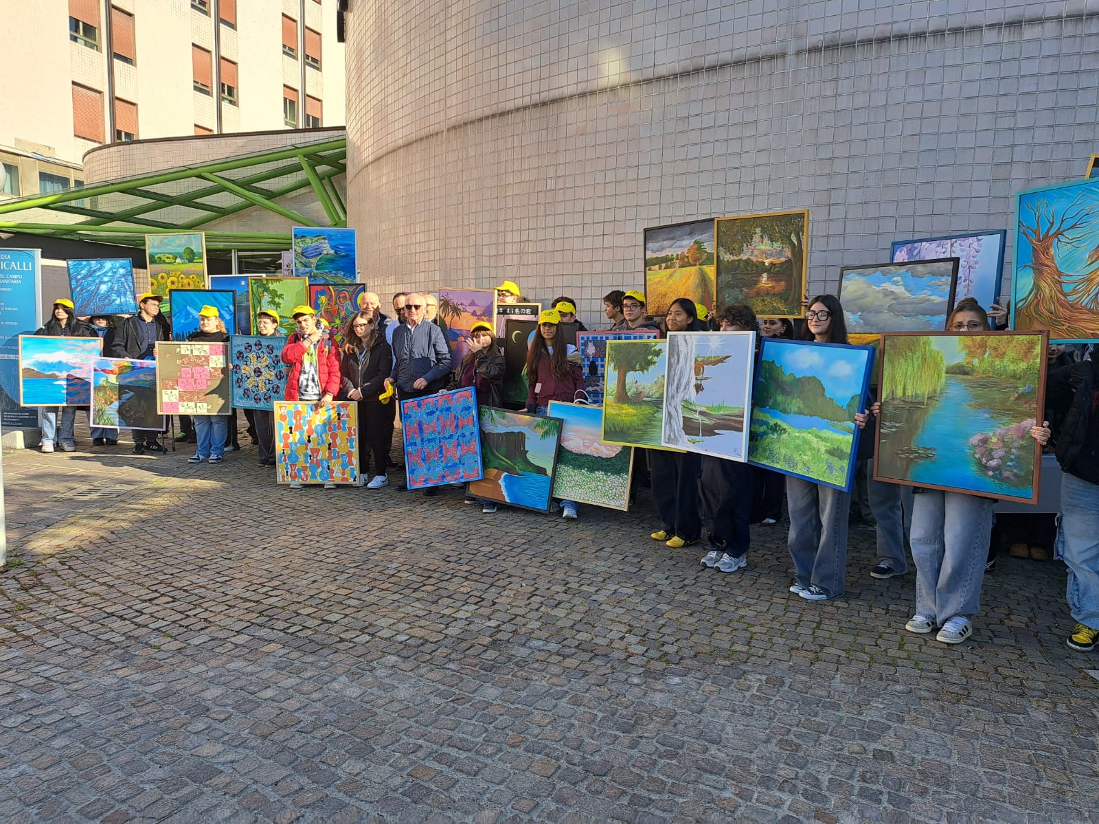Quaranta opere pittoriche andranno ad abbellire, con i loro colori, i reparti dell’ospedale di Arezzo contribuendo a renderli accoglienti. Le hanno realizzate studentesse e studenti del Liceo Artistico Piero della Francesca sotto la supervisione del professor Matteo Benetazzo, responsabile del progetto, e dei professori Noemie Grottini e Gerardo Gallifoco, con la collaborazione di Calcit Arezzo che da oltre 15 anni sostiene l’iniziativa attraverso l’acquisto dei materiali necessari. Quaranta quadri a tema libero, frutto della creatività degli studenti del liceo che, stamani, li hanno consegnati al dr. Alessio Cappetti, direttore dell’ospedale San Donato di Arezzo. Gli studenti erano accompagnati dal Dirigente scolastico Luciano Tagliaferri e dai docenti che hanno seguito i ragazzi nella realizzazione delle opere. Gli studenti coinvolti sono delle classi della sezione di Stampa e Tessuto e delle classi di Pittorico che hanno realizzato 40 opere su tela destinate ad abbellire i reparti dell’ospedale.