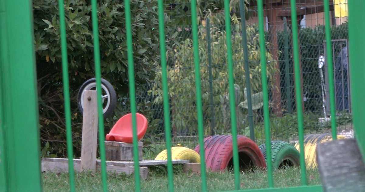 Un luogo curato e attrezzato, lo spazio esterno all'asilo, nel quale i piccoli giocano sotto lo sguardo delle insegnanti ed educatrici.