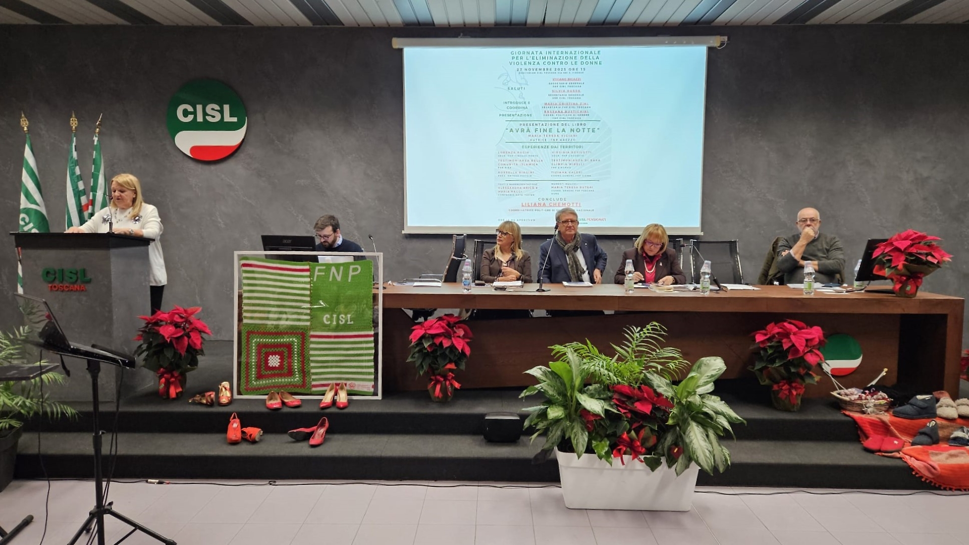 Ed è proprio la famiglia, o ciò che dovrebbe esserlo, il luogo dove si consuma la quasi totalità dei delitti. Ventisette dei trentadue femminicidi toscani si sono verificati all’interno della rete degli affetti. Una conferma drammatica arriva anche dai numeri del “codice rosa”: nel solo 2024 gli accessi al pronto soccorso per violenze, tra le adulte, sono stati 2.235. Cento di queste donne avevano più di 70 anni. E secondo gli operatori, ciò che emerge è solo la frazione visibile di un fenomeno molto più ampio, sommerso da paura, vergogna o incapacitá di chiedere aiuto. L’appuntamento fiorentino non si è fermato ai dati. Ha intrecciato testimonianze, momenti artistici e musica, fino alla presentazione del libro Avrà fine la notte di Maria Teresa Vigiani della Fnp-Cisl di Arezzo, un percorso storico dentro la violenza di genere che prova, pagina dopo pagina, a lasciare uno spiraglio per la speranza: quella di un cammino ancora possibile verso una reale uguaglianza.