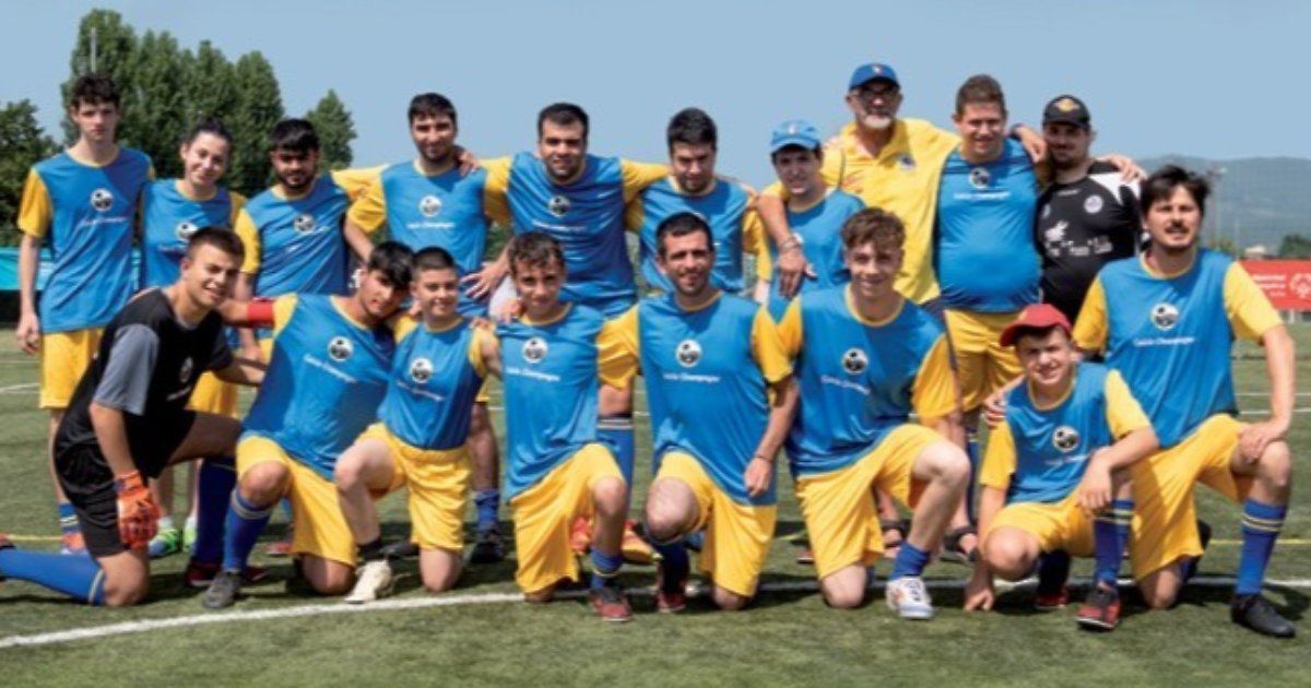 Dare voce a chi voce non ce l’ha. L’Olmoponte Santafirmina ha fatto questo. Ha dato la possibilità di giocare a calcio ai ragazzi che lo sport, in generale, non gli avrebbe aperto le sue porte. Forse lo avrebbe fatto, ma non nel modo che avrebbero voluto loro. Cioè sentirsi in tutto e per tutto giocatori di una squadra di calcio. E così un giorno, l’allenatore Gianluca Livi ha deciso di mettere su una squadra formata da ragazzi disabili e da normodotati -ma quante etichette- ed ha trovato anche un nome che richiamasse a qualcosa di positivo. È nato così il Calcio Champagne.