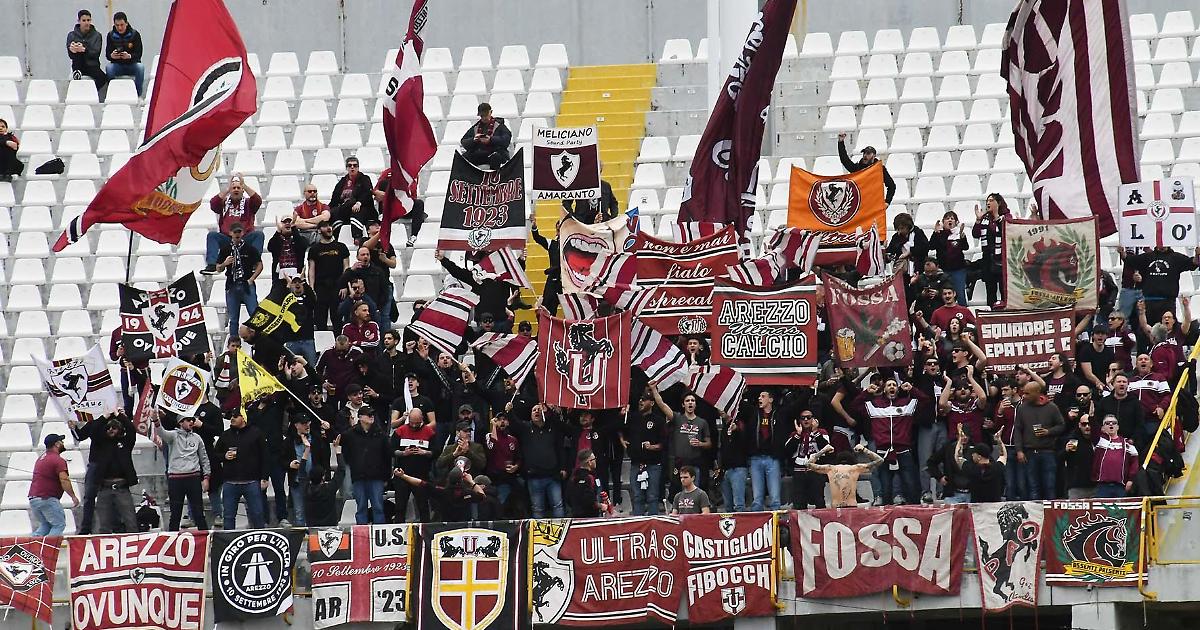 I tifosi dell'Arezzo sugli spalti del Del Duca