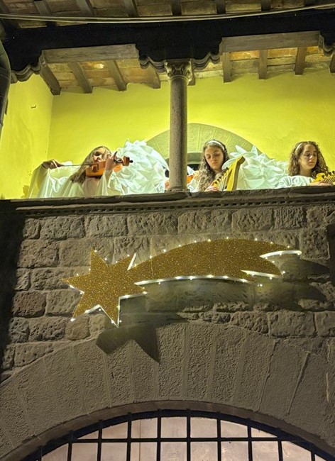 Una rappresentazione semplice ma toccante, con Celeste e Giovanni ad interpretare Maria e Giuseppe e con i pastori e gli angeli sulla terrazza sopra la grotta, e gli animali veri a rendere la scena ancora più realistica.