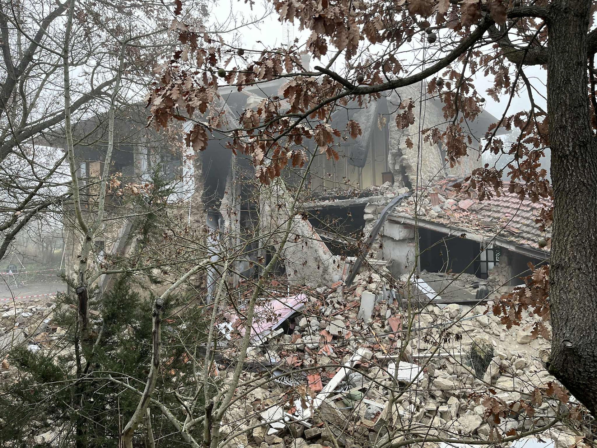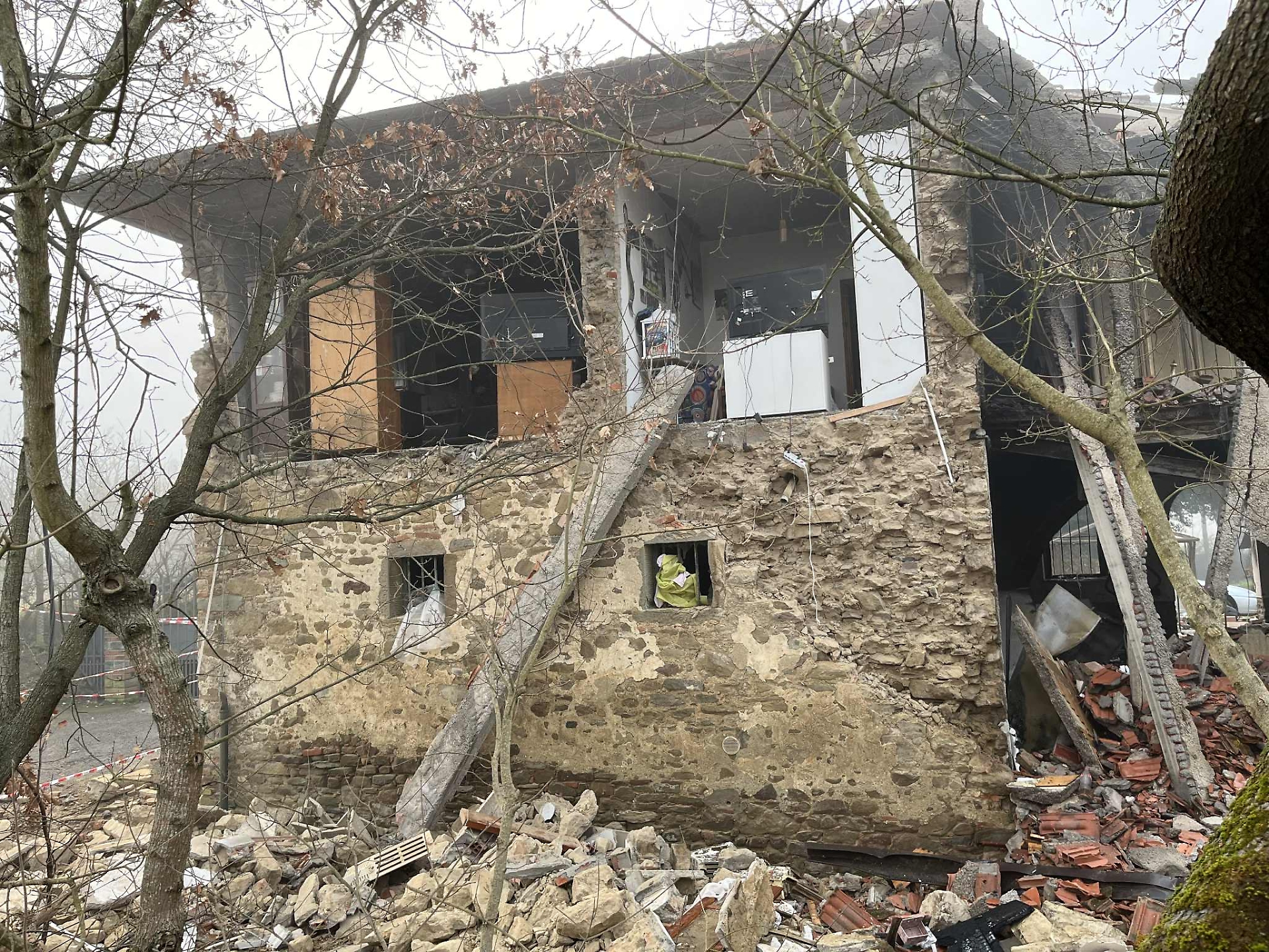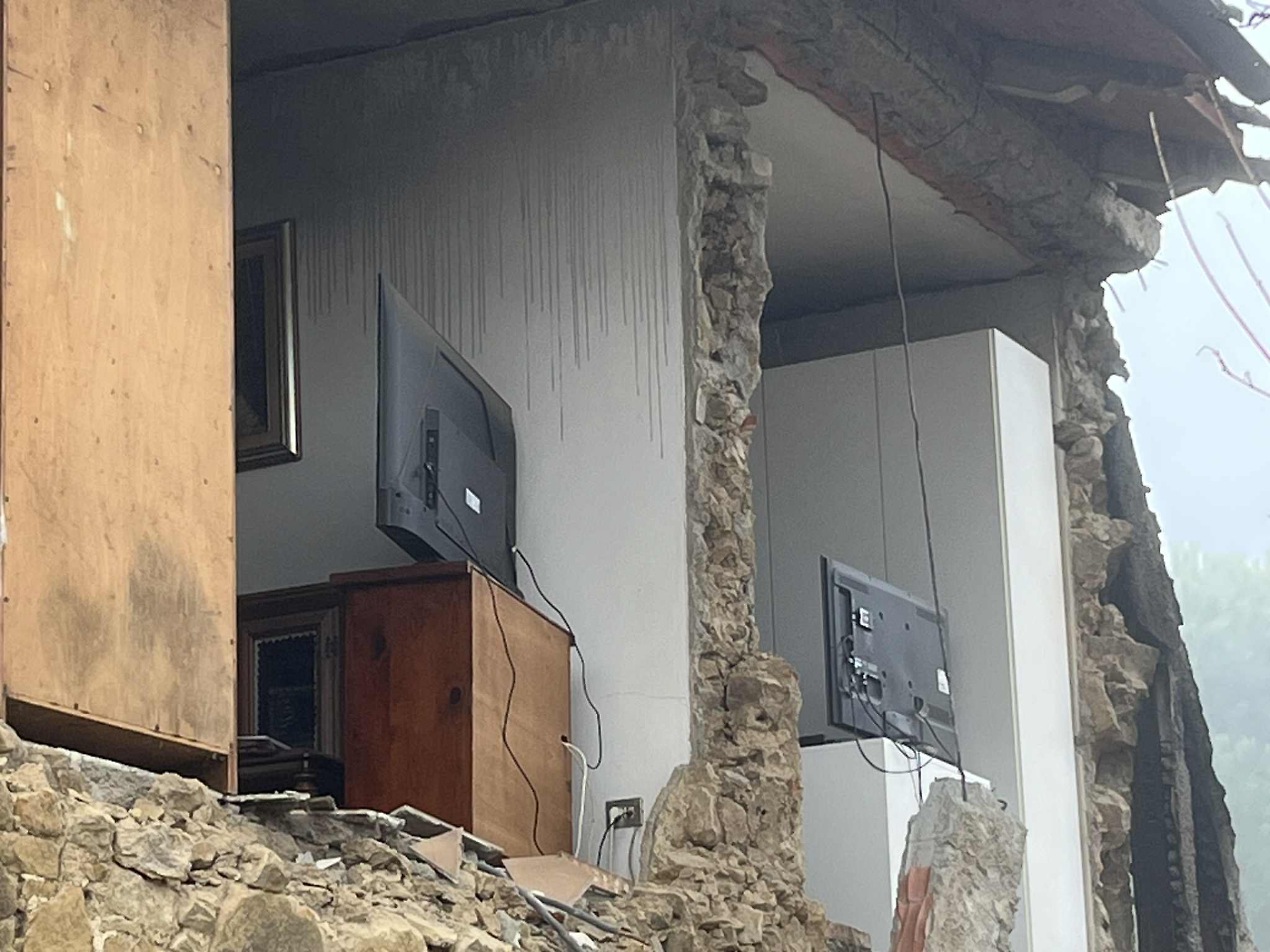 L'uomo e la donna erano al piano superiore, dove lo squarcio della parete mostra ancora i televisori rimasti in piedi sui mobili, intorno alla devastazione. La 76enne era invece al piano inferiore.