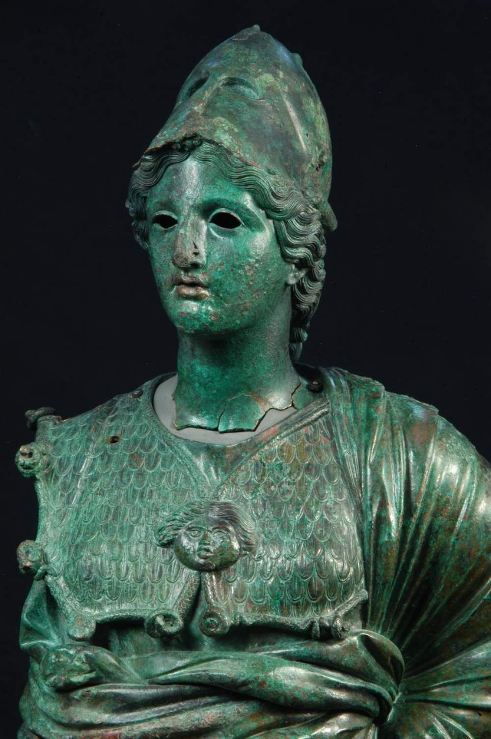 La dea è raffigurata come una guerriera, con elmo ed egida, è alta un metro e 55 centimetri e raffigura la divinità romana della saggezza, delle arti e della guerra strategica.
