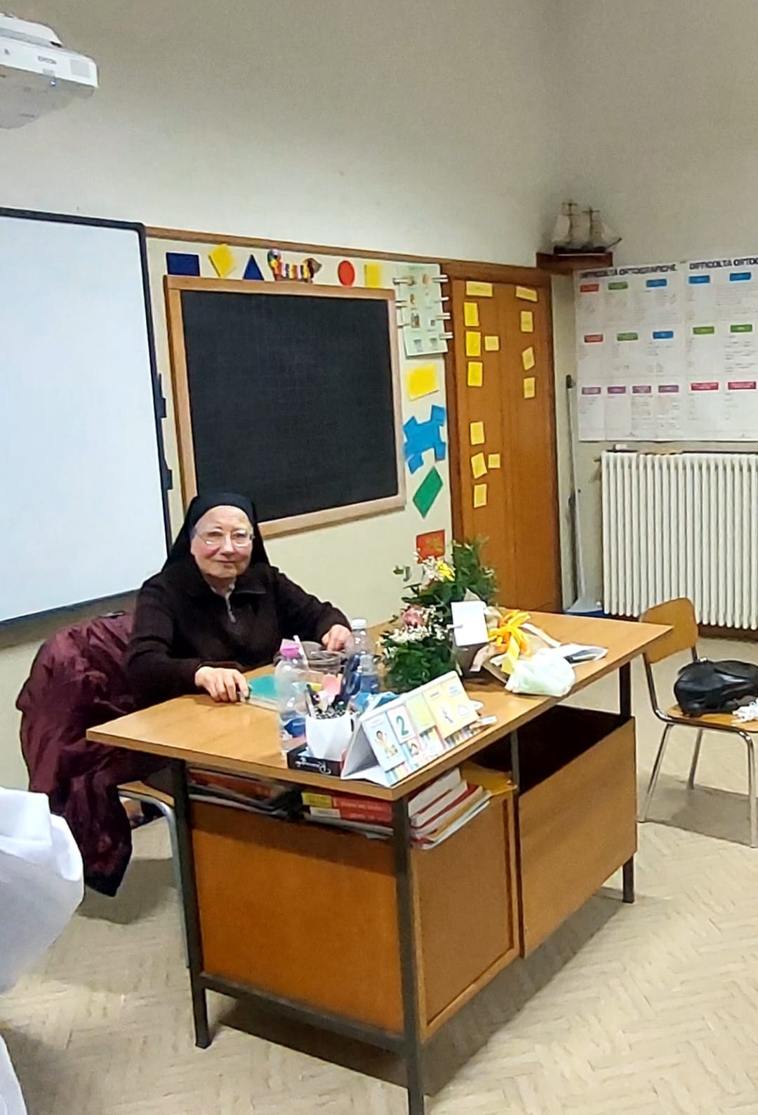 Il momento più intenso della giornata è stato l'ingresso in classe di Suor Gabriella Pascucci, accompagnata con un pretesto dalla direttrice e completamente ignara di ciò che stava per accadere. Davanti a lei ha trovato i suoi primi allievi, la prima classe della sua carriera di insegnante. La sorpresa ha lasciato spazio a commozione, abbracci e ricordi condivisi. In quell'istante, come hanno commentato alcuni ex alunni, «abbiamo visto l'Amore vincere».