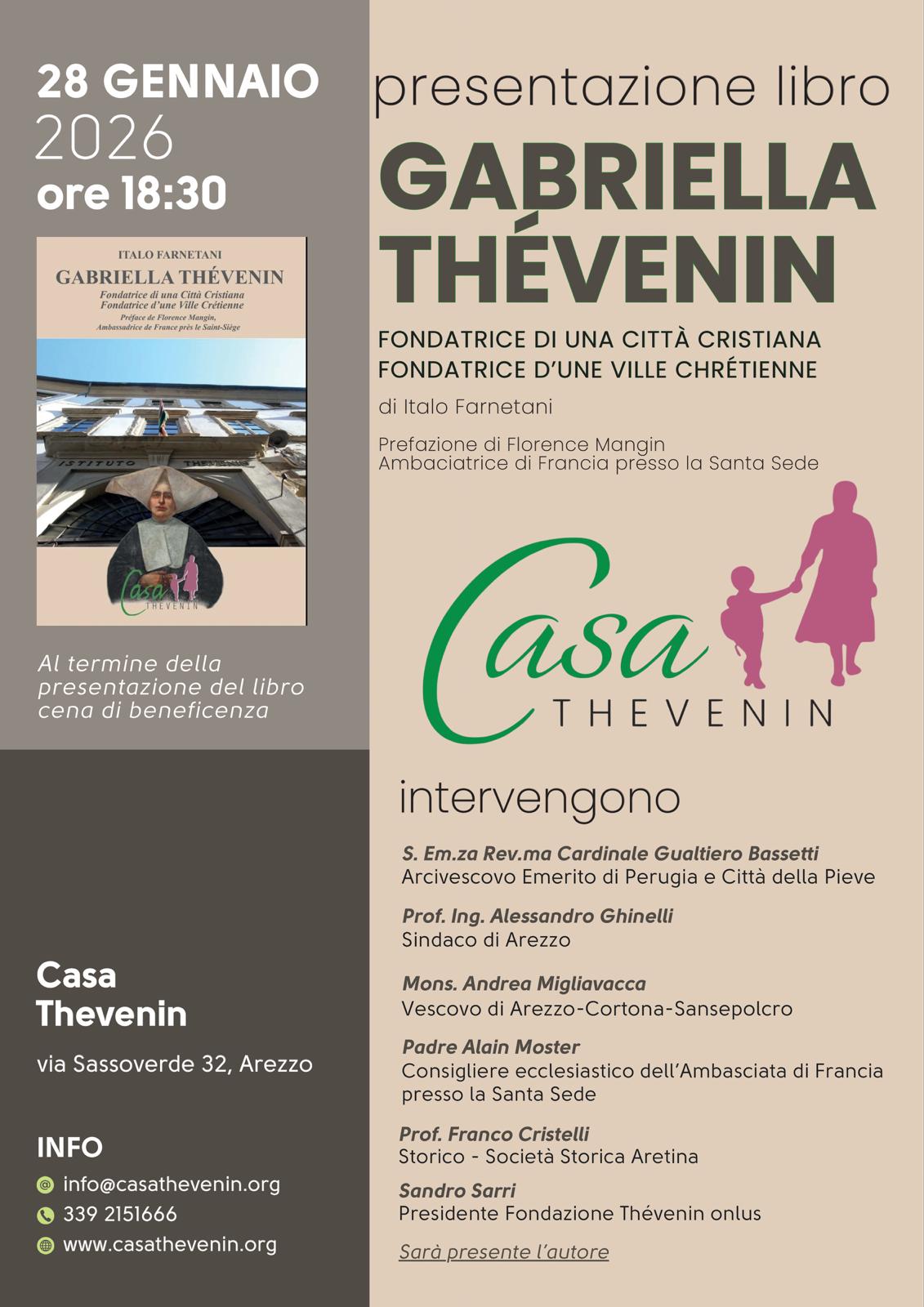E sul libro: “Documenta l’importanza mondiale di suor Gabriella Thévenin che ad Arezzo realizzò una rivoluzione nell'assistenza alle orfane, facendole passare dall'emarginazione all'emancipazione, dalla sopravvivenza alla cittadinanza, unendo lo spirito della Carità Cristiana all'esercizio dei diritti della persona emersi dalla Rivoluzione Francese. Per questo l’opera di suor Gabriella Thévenin assume una rilevanza internazionale ed è la principale espressione della cultura francese ad Arezzo”.