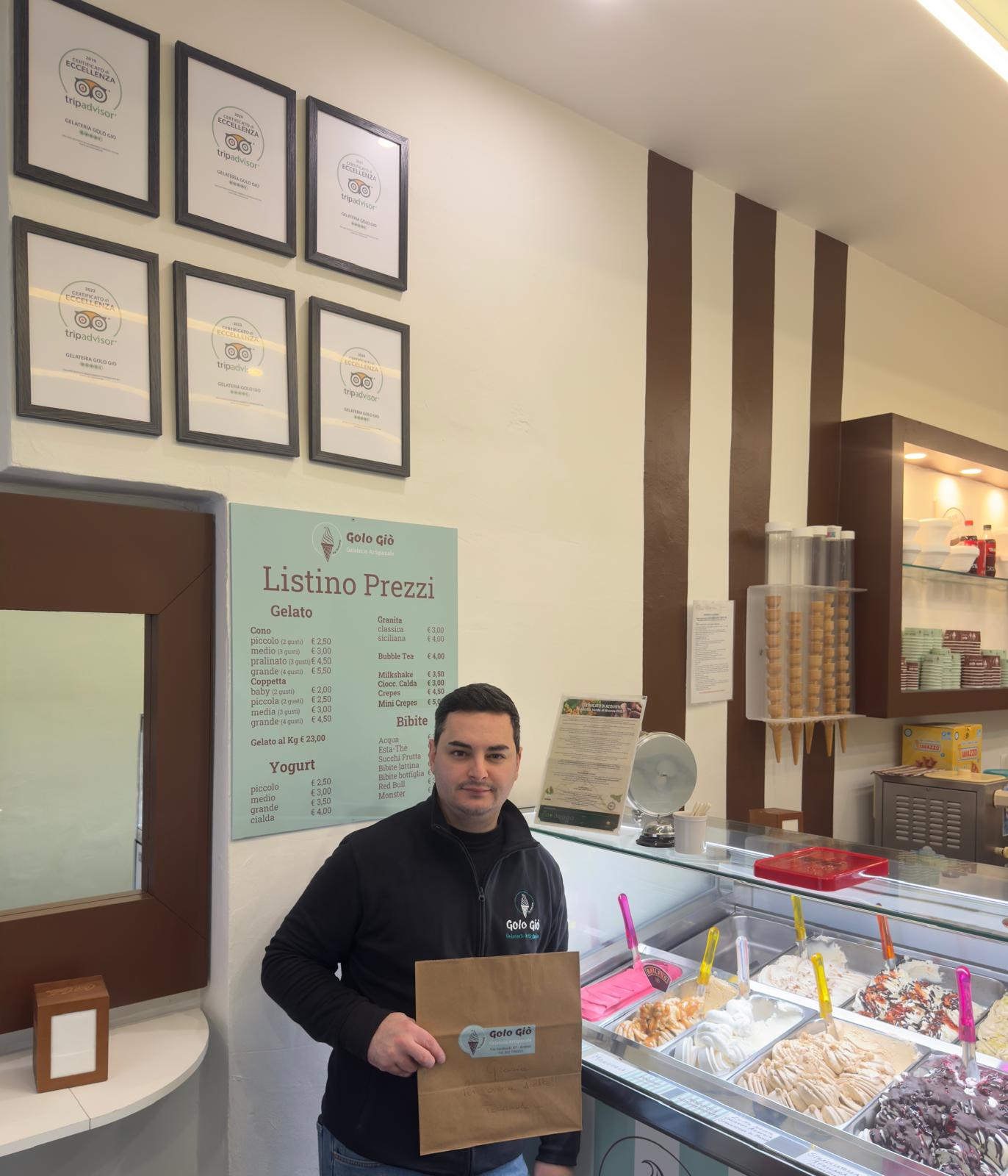 “Perdona gli altri, non perché essi meritano il perdono, ma perché tu meriti la pace. Buddha”. È una delle tante frasi che compaiono sulle buste del gelato della gelateria Golo Giò che si trova in piazza Sant’Agostino.