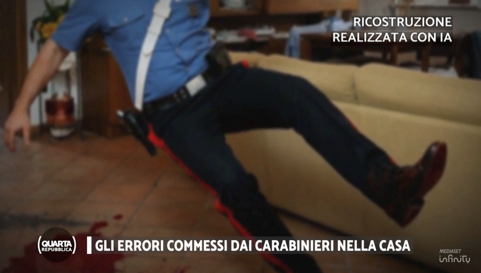 Un carabiniere sarebbe caduto durante i rilievi (Frame servizio Quarta Repubblica)