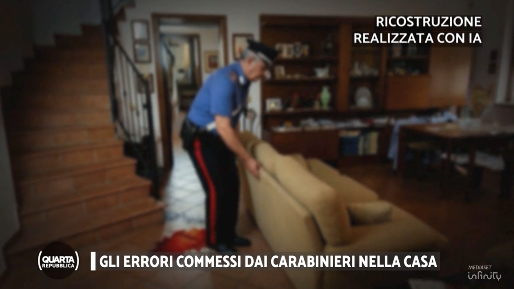 Subito – sostiene la ricostruzione – capiscono di trovarsi davanti a una scena del crimine. "La grande pozza di sangue all’altezza delle scale, il portavaso rovesciato. E poi ancora sangue vicino al telefono fisso, lungo il muro, lungo il corridoio. E sulle scale della cantina, Chiara", spiega Claudio Rinaldi, autore del servizio, realizzato grazie al supporto dell’intelligenza artificiale.
