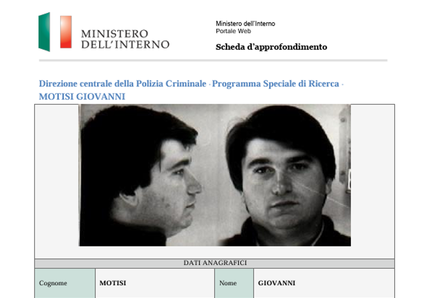 La scheda del super latitante Giovanni Motisi