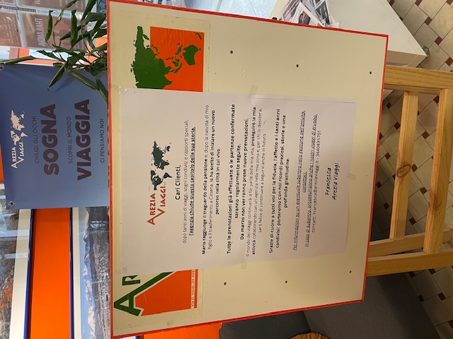 Sulla vetrina dell'Agenzia Arezia posta dentro la galleria di via Verdi, c'è un cartello. Si nota in mezzo a tutti gli annunci di viaggi e colpisce. Lo firma la titolare, Francesca Polvani e dice che "l'agenzia chiude questo capitolo della sua storia".