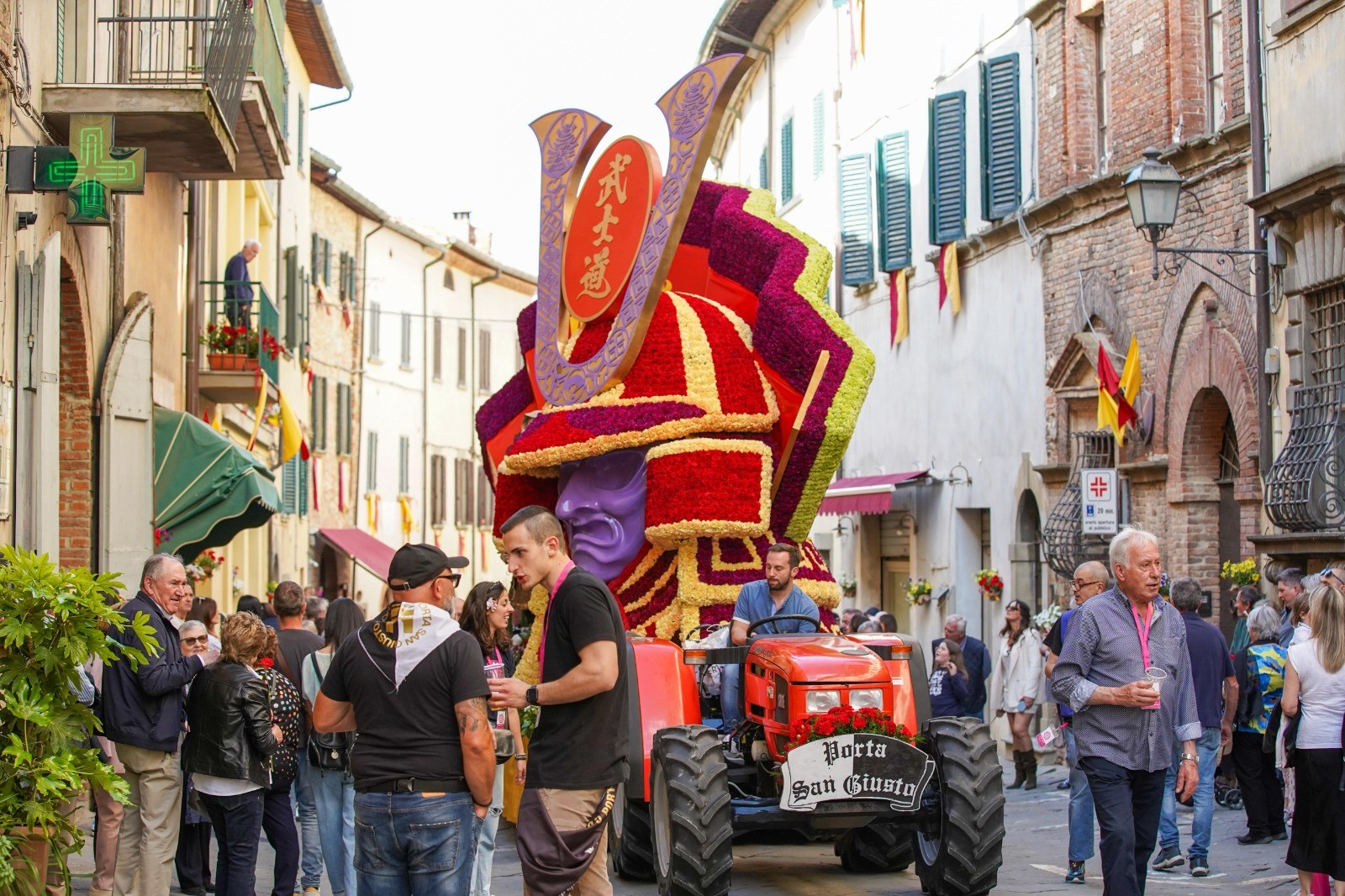 La manifestazione, che da quasi novant'anni celebra la creatività e lo spirito della comunità di Lucignano (Arezzo), porterà ancora una volta nel cuore di uno dei borghi più belli d'Italia la spettacolare sfilata dei carri fioriti, accompagnata da bande musicali e gruppi folkloristici, trasformando il centro storico in un grande palcoscenico di colori, musica e profumi.