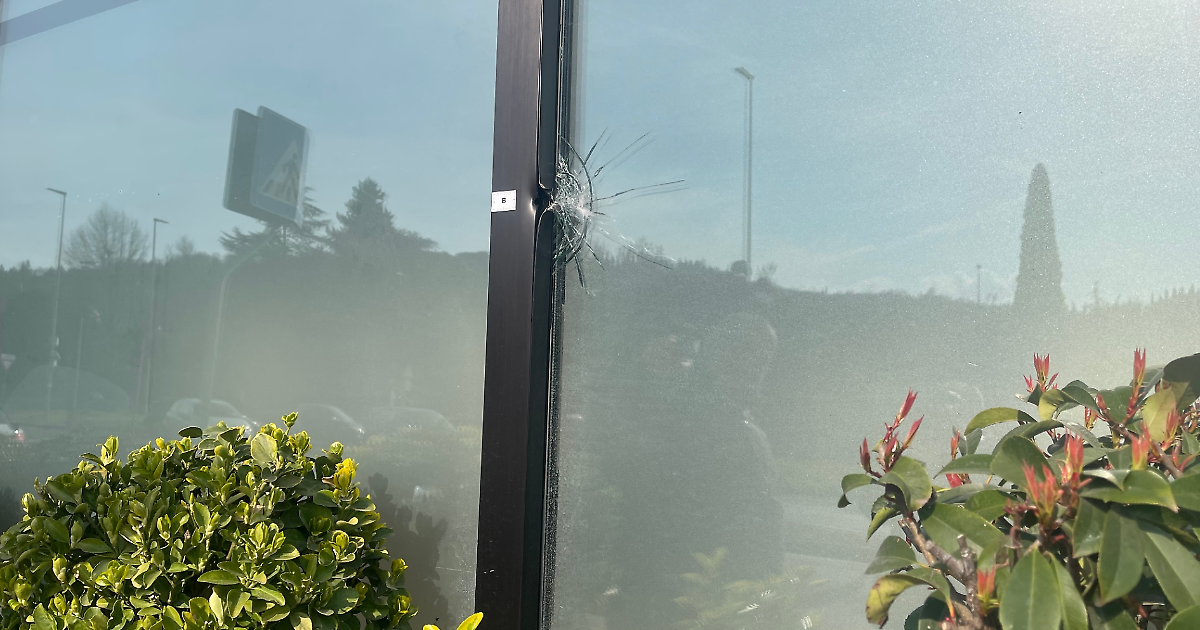 Uno dei colpi esplosi ha raggiunto una vetrata
