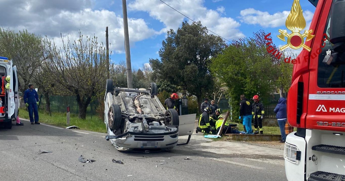 Scontro fra due auto e una si ribalta: ottantenne trasportato in ospedale