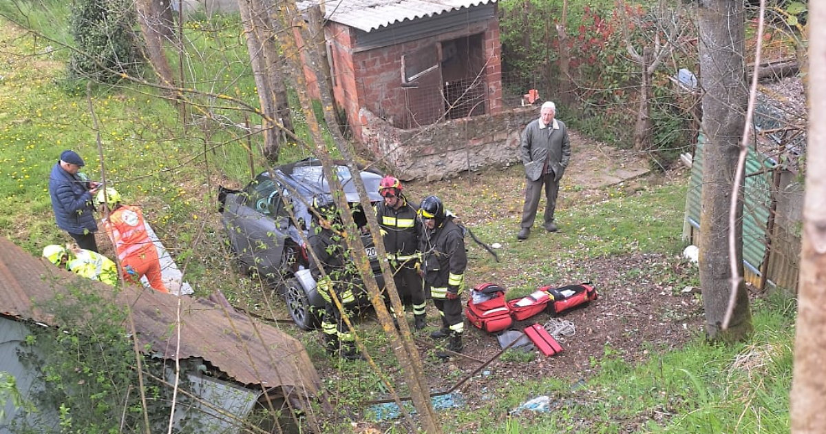 Un'auto verso le 14,40 è precipitata dal ponte finendo nei terreni sottostanti dopo un salto di circa cinque metri.