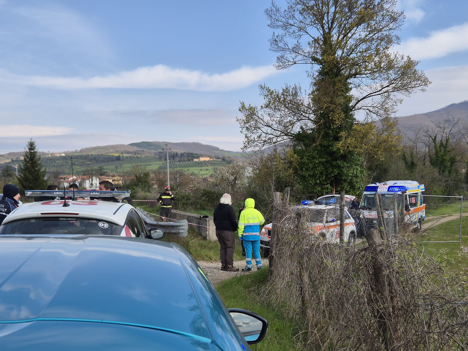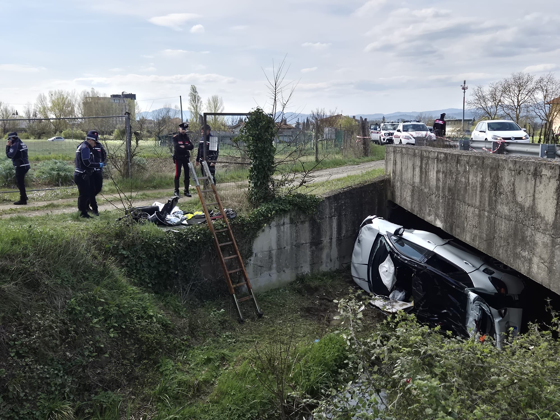 Secondo le prime ricostruzioni, ancora al vaglio delle autorità, la Renault Captur bianca guidata da Brizzi — posta poi sotto sequestro — avrebbe improvvisamente cambiato traiettoria senza lasciare segni di frenata sull'asfalto. Il veicolo ha percorso almeno trenta metri nella fossetta, quindi ha urtato il muretto del ponte sul torrente Fiumicello, che gli ha fatto da leva, ribaltandosi nel corso d'acqua dopo un volo di qualche metro. Un impatto violento che non ha lasciato scampo al 40enne: è stato un vicino, titolare di un'azienda agricola, a udire il forte boato e ad allertare i soccorsi. Sul posto sono arrivati i sanitari del 118, i vigili del fuoco del locale distaccamento, la Polizia Municipale, che si è occupata dei rilievi, e i carabinieri. Nonostante i tentativi, per Brizzi non c'è stato nulla da fare. Le operazioni di recupero del mezzo e della salma sono risultate particolarmente complesse.