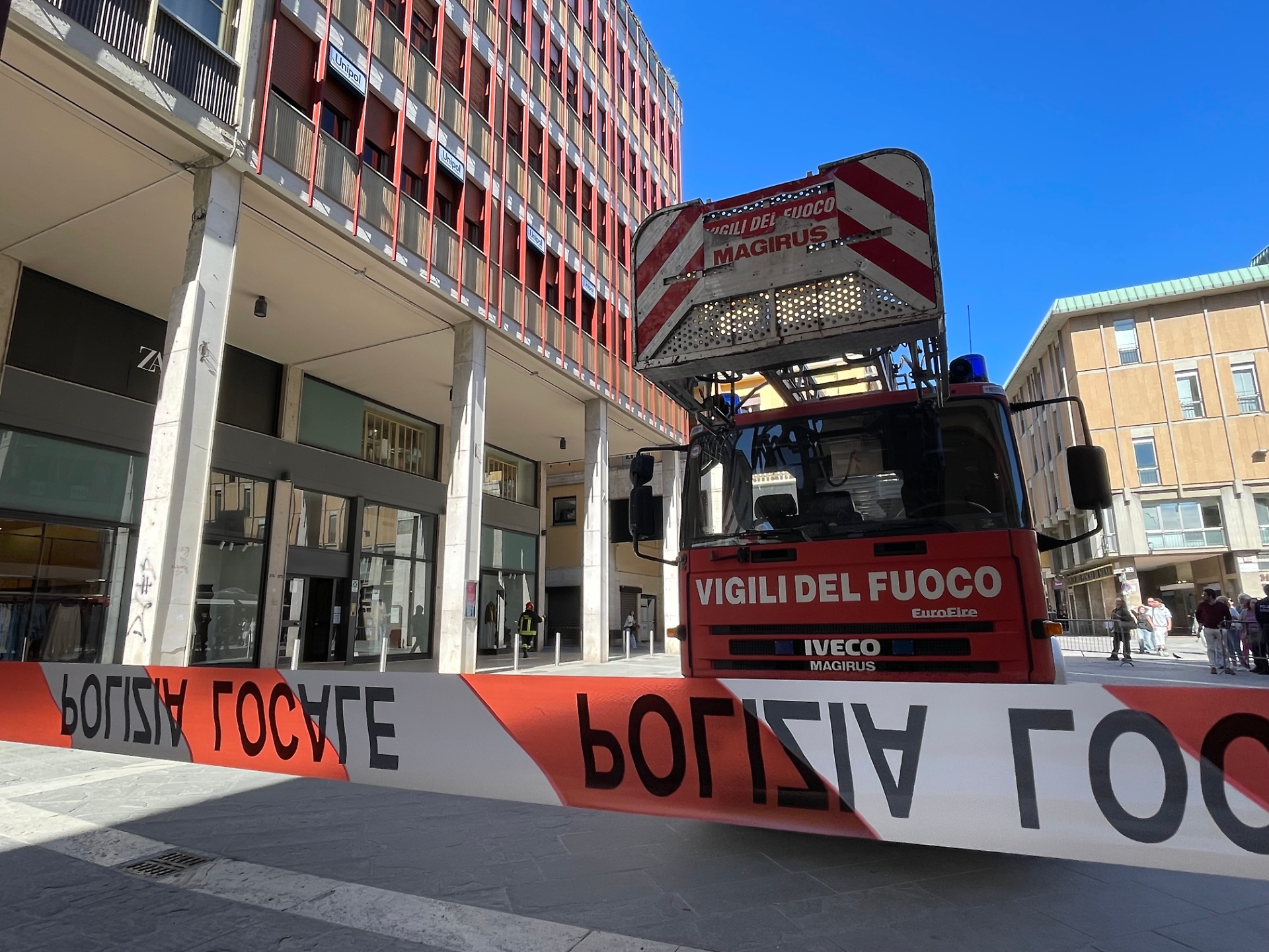 Intorno alle 18, siamo tornati sul posto per capire come è la situazione. L’intera area circostante l’edificio continua ad essere delimitata e probabilmente sarà così fino alla messa in sicurezza. Interdetta dunque al passaggio pedonale e veicolare. Sul posto è stata attivata l’Unità Comando Locale dei vigili del fuoco per il coordinamento delle attività di monitoraggio strutturale e anche per le operazioni di recupero dei beni essenziali da parte dei residenti. C’è una coppia che ha una valigia pronta e che ci racconta: “I vigili ci hanno subito bussato alla porta e ci hanno detto di evacuare il palazzo anche con velocità. Stasera (ieri ndr) dormiamo a casa di parenti e speriamo di rientrare alla svelta a casa nostra”. Ma sembra che la situazione non venga ripristinata prima di una settimana, non è escluso che ci vorrà ancora di più. Incontriamo di nuovo anche la signora Cristina, fuori casa dalle 15 e ci dice che è pronta a partire per il Chianti. Ma c’è anche chi nel palazzo ci lavora. Una ragazza chiede di andare a riprendere il computer in ufficio. I vigili del fuoco l’accompagnano così come hanno fatto con altre persone, residenti e impiegati e le commesse di Zara che sono stati tutti accompagnati dentro le proprie strutture e poi, una volta prese le proprie cose, sono stati fatti uscire. Tanti, ovviamente i curiosi. Il palazzo, oggi di Zara, un tempo era del Cristallo per l’omonimo bar o dello Scortecci per la tabaccheria, è una costruzione risalente agli anni ’60 ed è uno dei palazzi iconici della città. Oggi è in pericolo e ha bisogno di manutenzione. I tecnici sono già al lavoro.