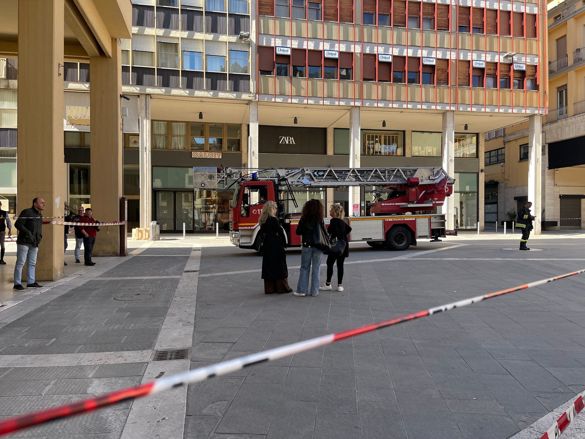 Cinquanta persone, ma il numero potrebbe salire, costrette a lasciare appartamenti, uffici e negozi. Il palazzo di Zara, in piazza San Jacopo è stato dichiarato inagibile per colpa di una colonna pericolante. Transennata la parte della piazza davanti al loggiato. Interdetta al passo. Il nastro bianco e rosso della polizia locale transenna fino in piazza Risorgimento. Ci sono vigili del fuoco, polizia locale e Forze dell’ordine a presidiare un punto della città -pieno centro - dove ogni giorno passano migliaia di persone. La colonna è una del loggiato dove sotto ci sono gli ingressi. È pericolante e ci vorrà minimo una settimana per metterla in sicurezza. Davanti al palazzo, condomini con le valigie pronti a lasciare le proprie case. Impiegati che chiedono di tornare in ufficio a prendere il computer, commesse di Zara uscite di gran fretta.