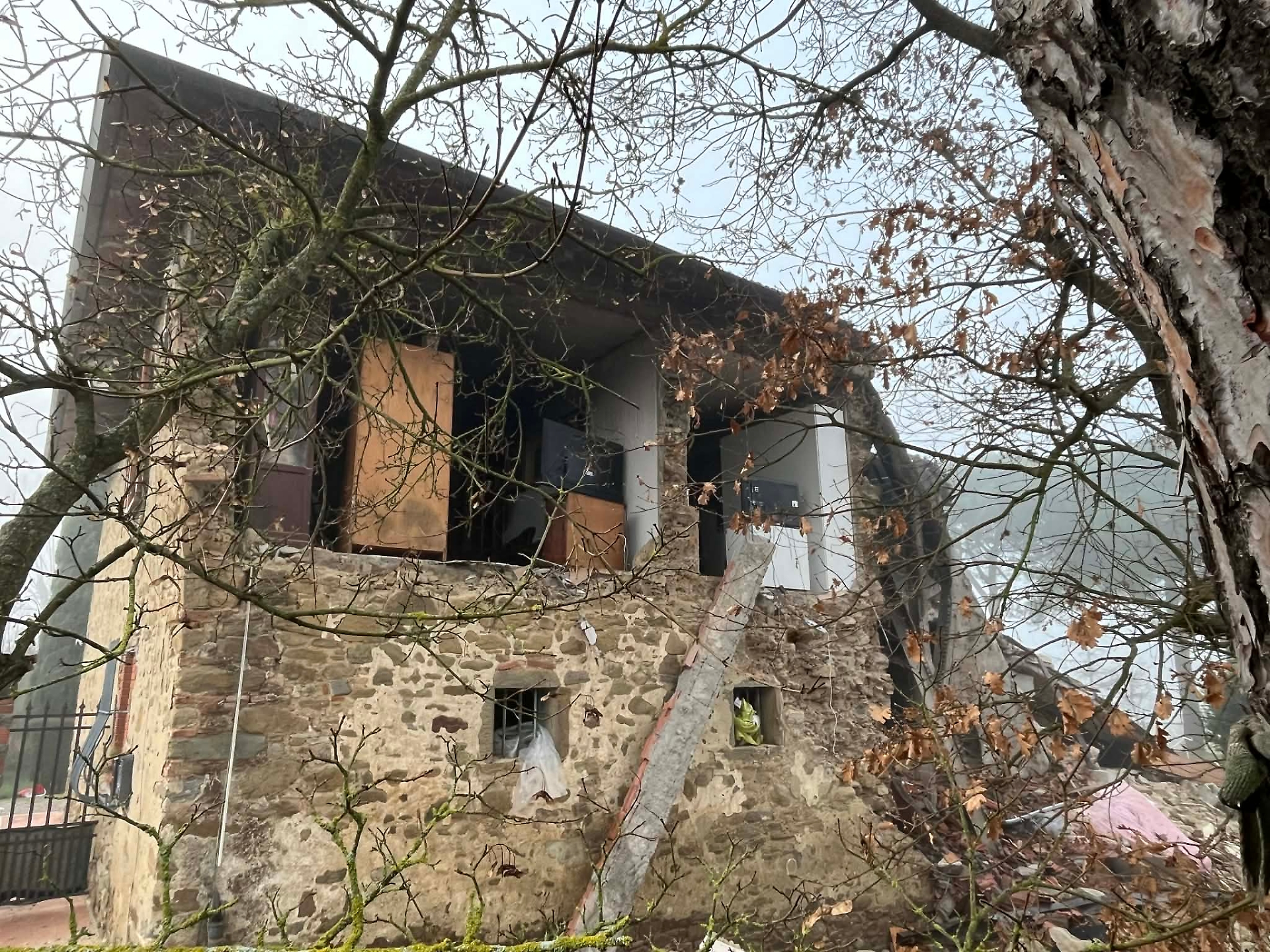 Secondo la ricostruzione il gas fuoriuscito - e si deve capire perché - quel pomeriggio ha formato una miscela infiammabile con l'ossigeno, innescata da una scintilla, provocando scoppio, incendio e crollo parziale della palazzina di due piani. I vigili del fuoco di Arezzo e Cortona operarono per ore spegnendo le fiamme e mettendo in sicurezza l'area, transennata e sequestrata.
