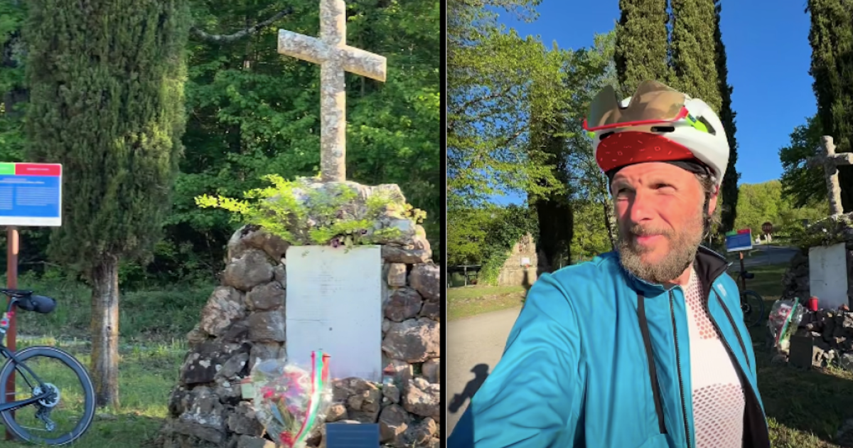 Un papavero rosso, l'erba verde, il bianco della lapide alle estremità del territorio del Comune di Cortona ad un soffio dall'Umbria. Jovanotti in bicicletta Falzano, uno dei luoghi della memoria, teatro di una delle stragi più feroci che hanno punteggiato il periodo dell'oppressione nazifascista in provincia di Arezzo. Lorenzo Cherubini in occasione del 25 aprile 2026 ha reso omaggio alle vittime di quella pagina di sangue. In bicicletta. Partito dalla casa di Cortona è salito su per la Montagna fino a Portole, quindi giù verso Falzano. Il canto degli uccellini, il sole di primavera, cartelli stradali consumati dal tempo, i nomi delle persone civili uccise resi illeggibili dal tempo che corrode il marmo. Jovanotti ha poi postato sui social un video che sintetizza la tappa, le riflessioni, le immagini.
