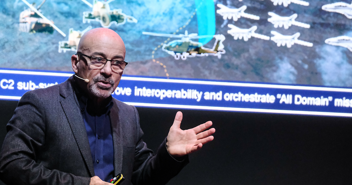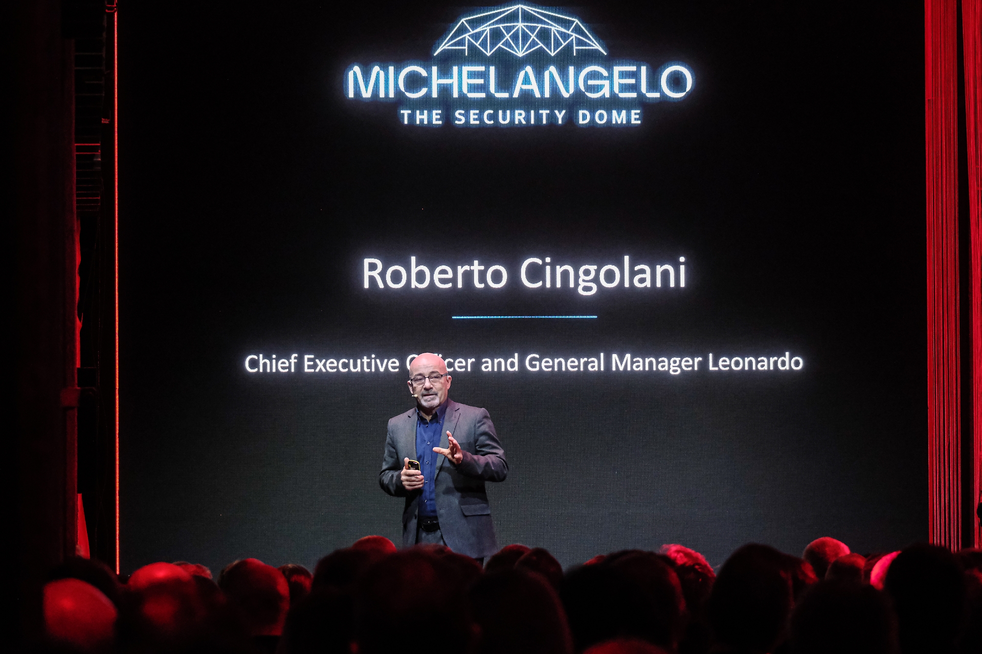 L'intervento di Roberto Cingolani, ceo di Leonardo, durante un convegno di Leonardo