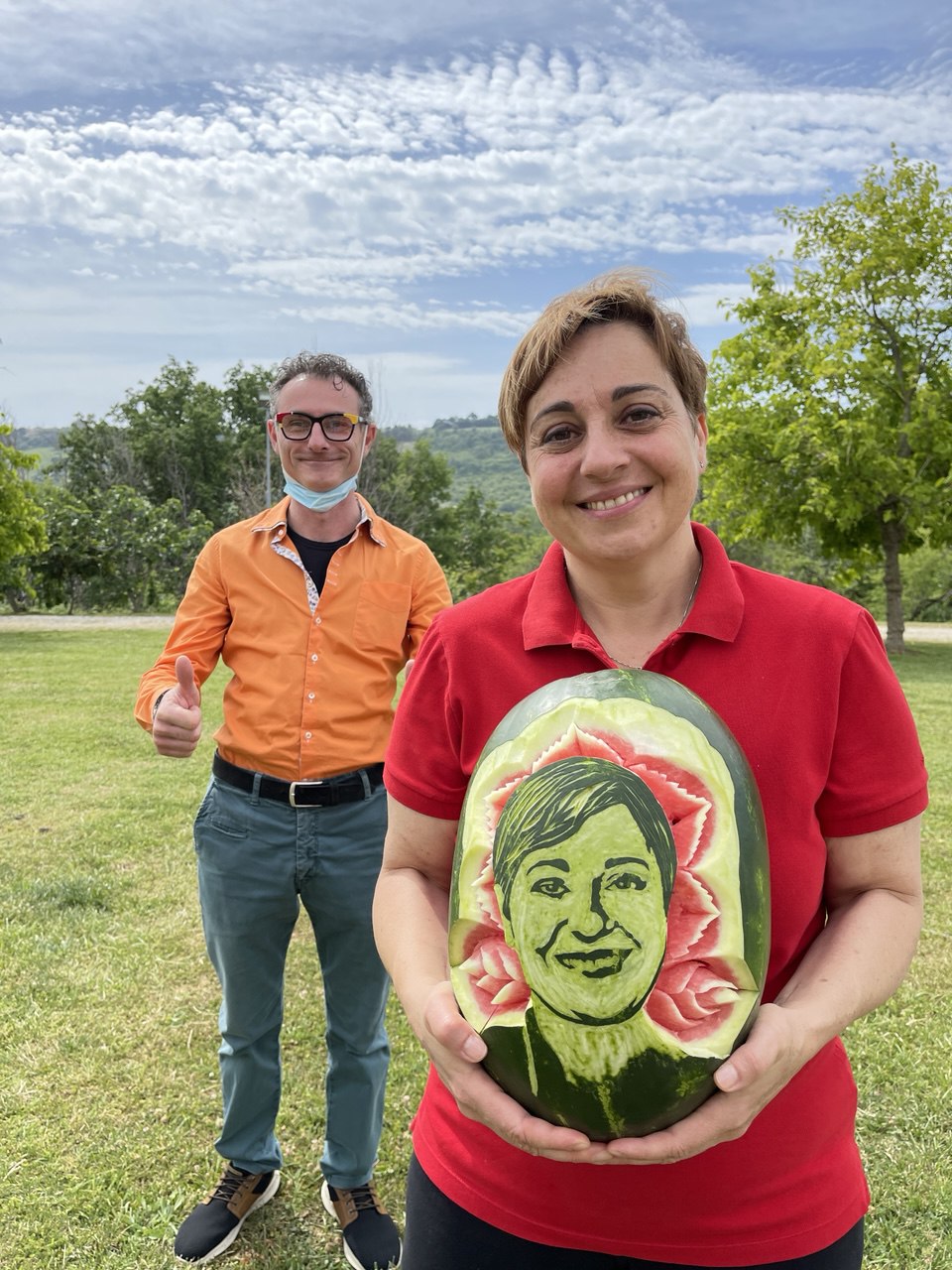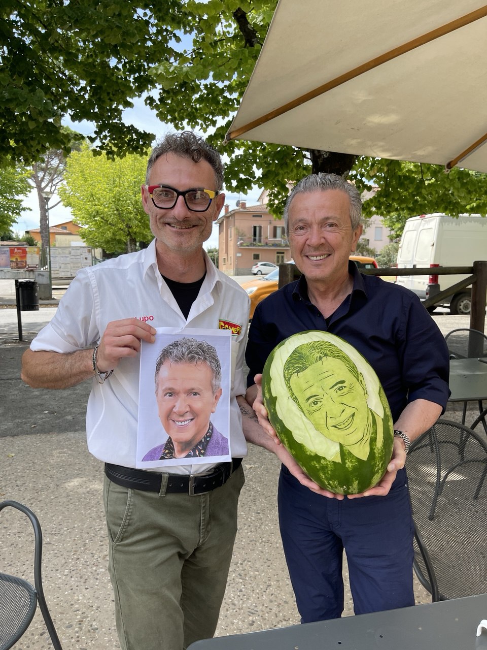 Alessandro Landini, 52 anni da compiere e un record da raggiungere. Disegnare più facce possibili sui cocomeri. Facce di personaggi famosi che poi consegna personalmente al vip di turno. Da Benedetta Rossi a Pupo, passando per tante persone che lui ha incontrato. Tutte orgogliose della loro faccia scolpita nel cocomero. Ad oggi sono 146 e Alessandro non si pone limiti. Vuole essere iscritto nel guinness dei record. Che sulla sua specialità non esiste. Sarebbe il primo. Praticamente una sfida con se stesso. Ad Anghiari gestisce anche il ristorante della frutta: Bar Cocomerò. Ma andiamo con ordine e partiamo dall’inizio.