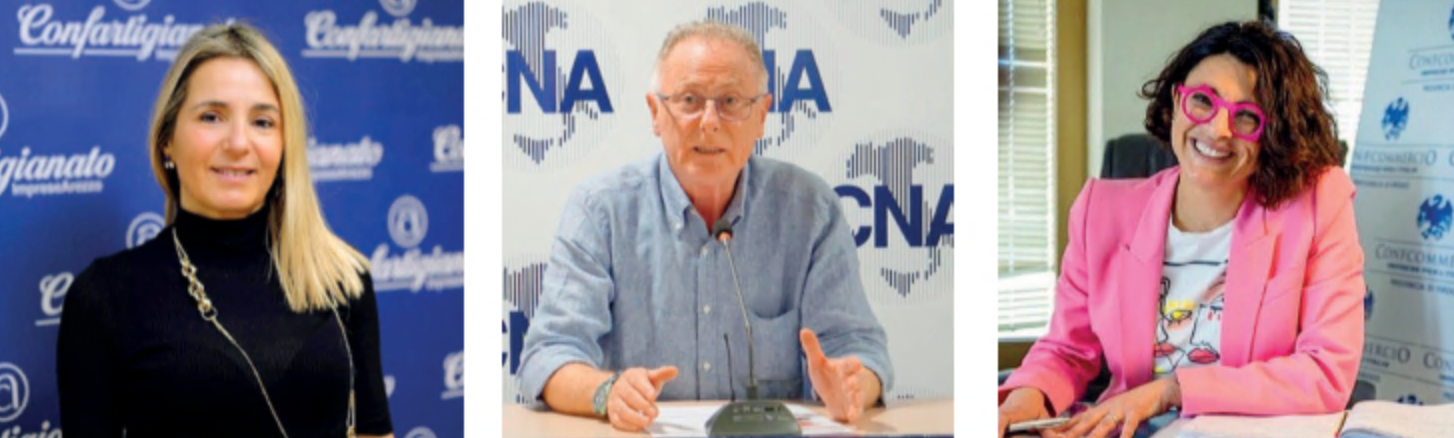 Da sinistra Alessandra Papini (Confartigianato), Fabio Mascagni (Cna) e Gabriella Iannotta (Confcommercio)